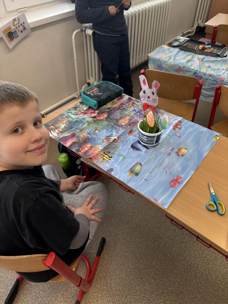 Naše první třída Chobotniček se v předvelikonočním čase pustila do krásné jarní činnosti. Děti si nejprve zasely obilí, o které se pečlivě staraly a sledovaly, jak postupně roste. S blížícími se Velikonocemi si své květináčky také krásně ozdobily – nechyběli veselí zajíčci ani barevná vajíčka, která jejich výtvory nádherně oživila.