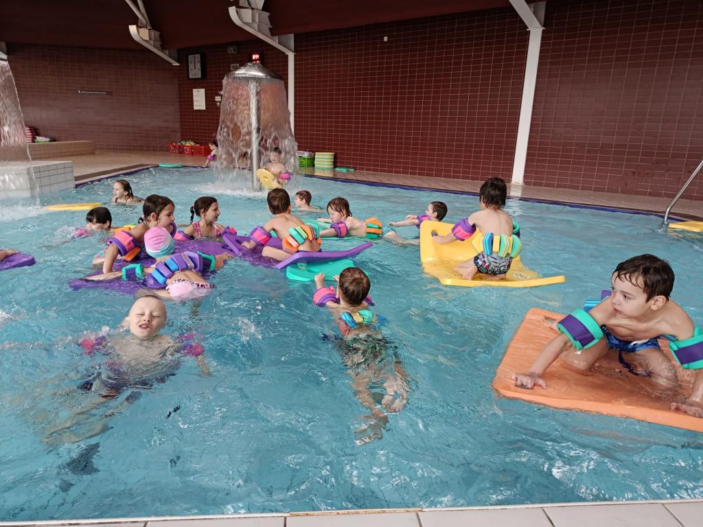 V úterý 7. dubna předškoláčci úspěšně zakončili plavecký výcvik. Na památku obdrželi svá "mokrá" vysvědčení za veškerou snahu, kterou během lekcí vynaložili. Děti si během výcviku osvojily řadu nových dovedností a udělaly tak velké pokroky. Všem plaváčkům patří velká pochvala. Poděkování patří také plavčicím, které se dětem behem deseti lekcí s péčí a trpělivostí věnovaly.