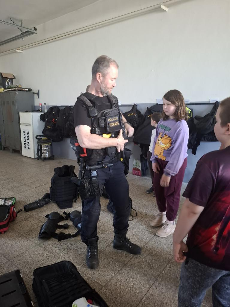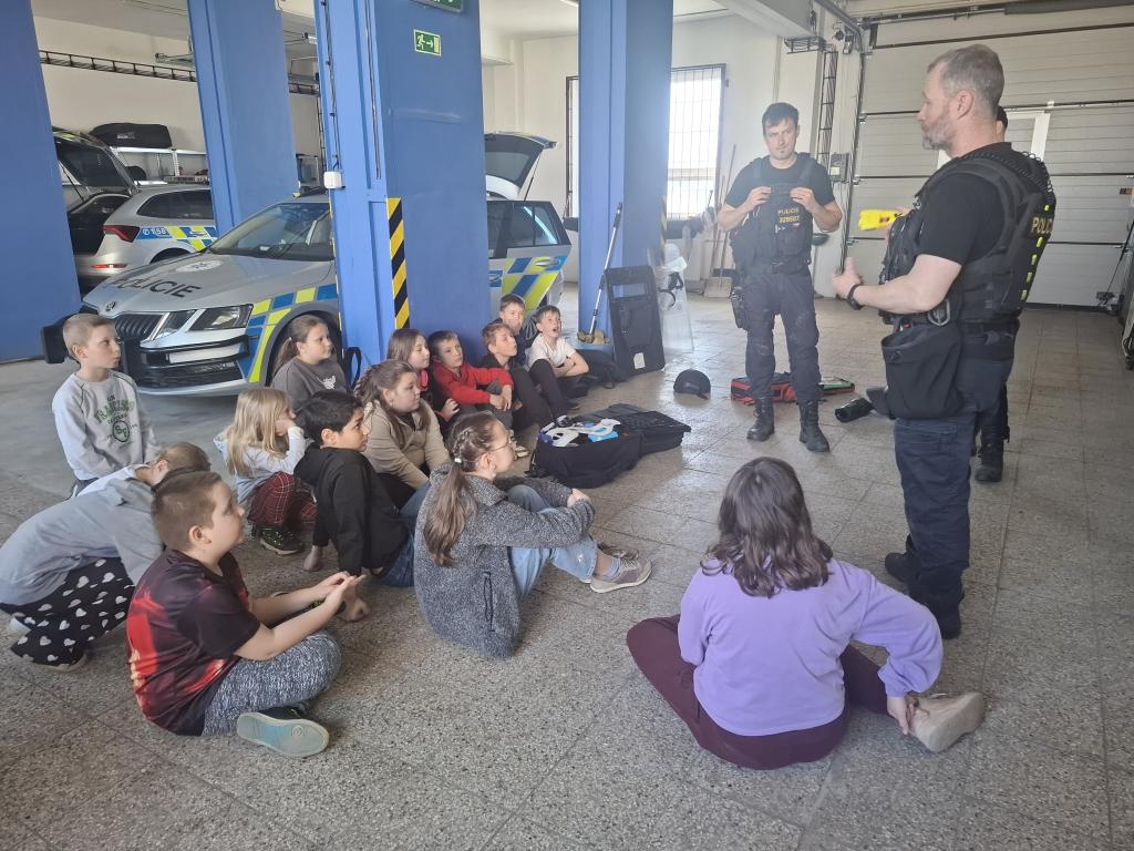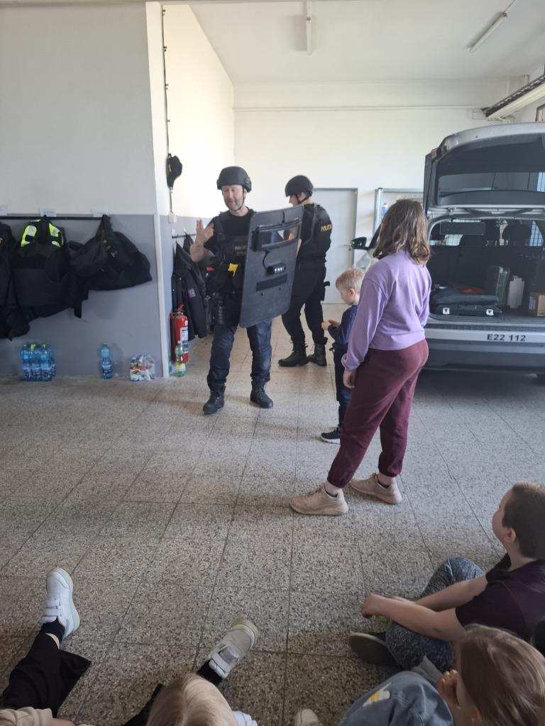 Ve středu 22. 4. 2026 dostala třída Mravenečků možnost podívat se na služebnu Policie ČR. Hned si