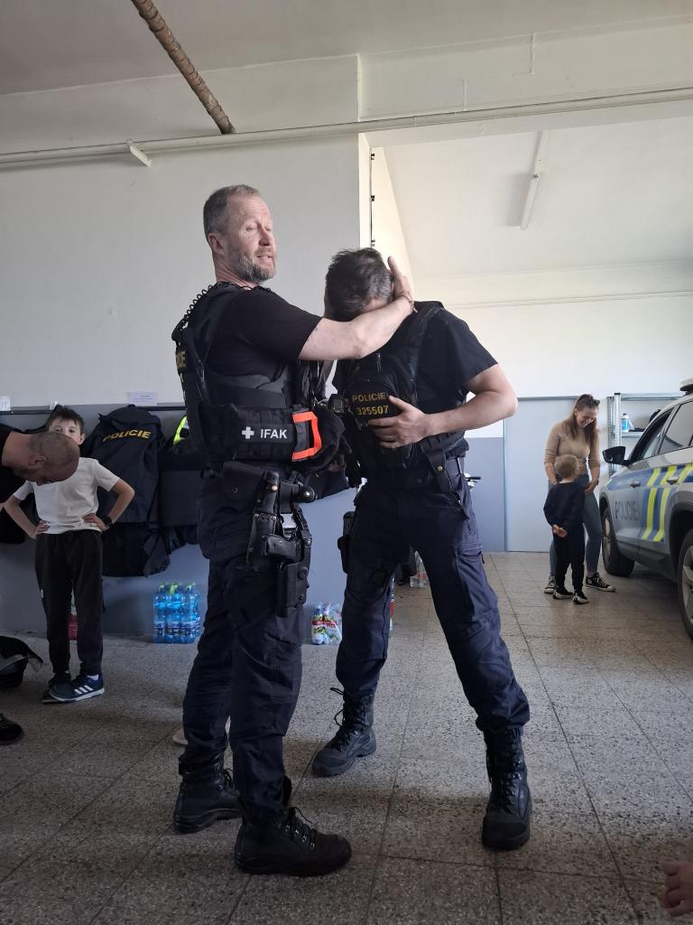 obušek, štíty, pouta a mnoho dalšího. Dokonce jsme měli i možnost shlédnout zneškodnění pachatele