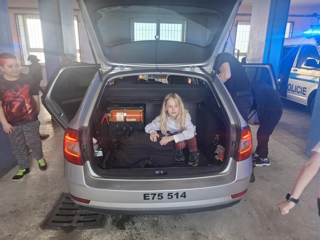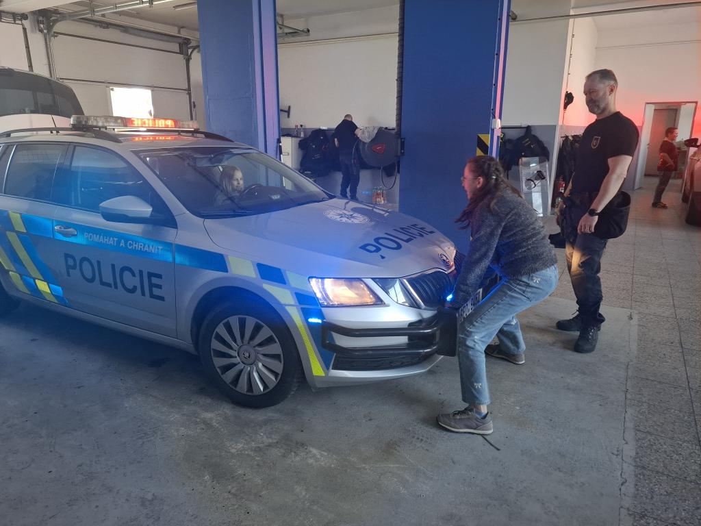 Nakonec jsme dostali možnost podívat se do garáží PČR, kde jsme viděli mnoho zajímavého! Nejprve