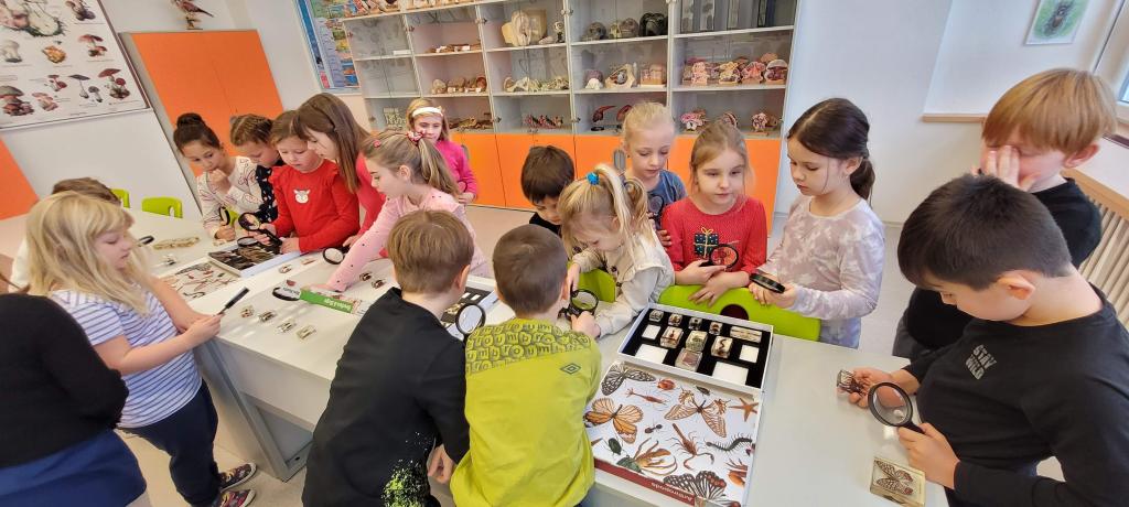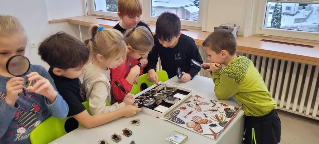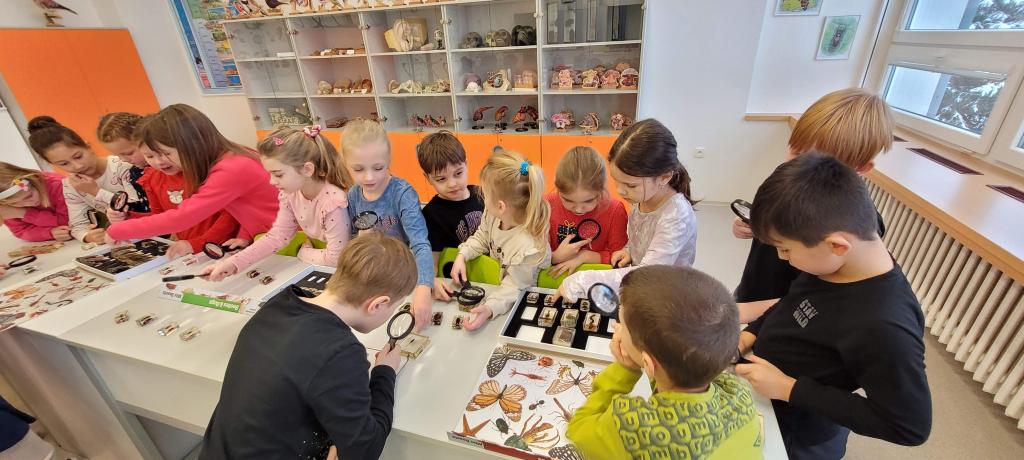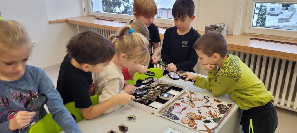 Žirafky už dva měsíce pravidelně poctivě čtou knížky podle svého výběru. Za 25 přečtení v měsíci si prvních deset čtenářů vybírá z karet aktivit. Tento měsíc si jednu kartu vybral i Ondra. Byla to karta Hodina na přání. Místo českého jazyka si přál jít do učebny přírodopisu a vyprávět nám o hmyzu. Nejprve si spolužáky vyzkoušel, co patří do hmyzu a pak už se děti chopily připravených lup začaly zkoumat zblízka i z dálky různé hmyzáky. V odborné učebně máme ve sbírce veliké množství nejen hmyzu, děti tak mohly vidět vývoj motýla od vajíčka, spočítat mravenci všechny nohy, či zblízka prozkoumat kusadla včely. Bylo to opravdu zajímavé bádání. Hodina na přání měla úspěch.