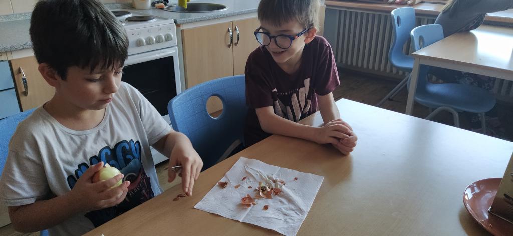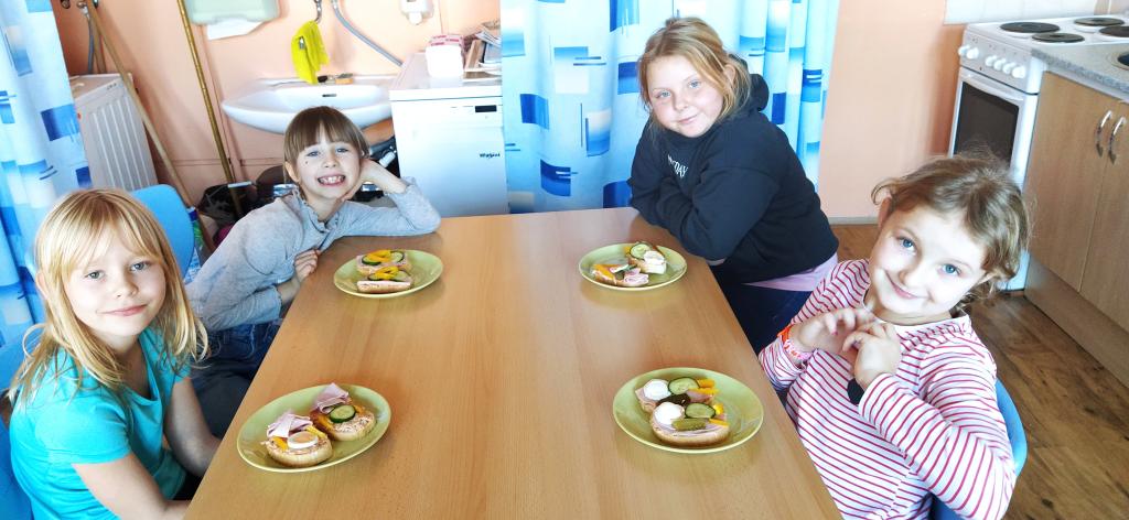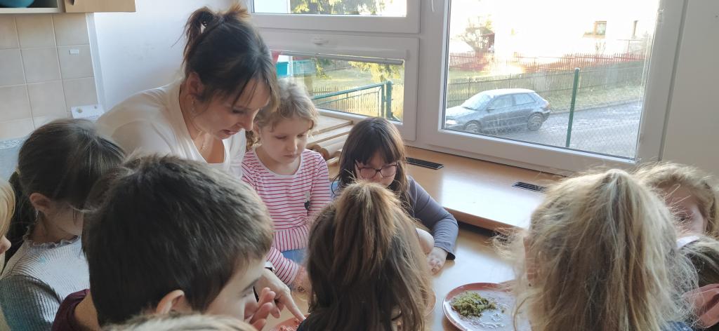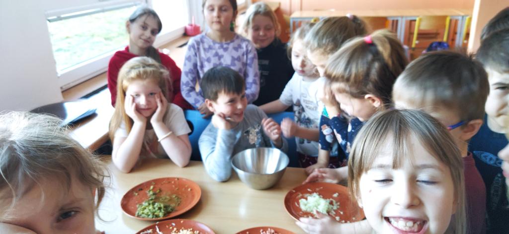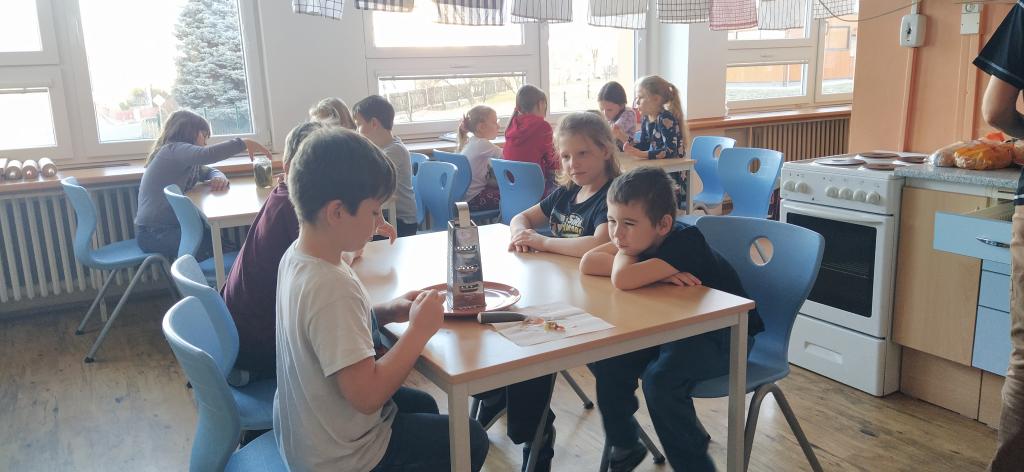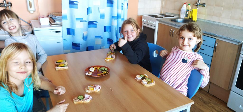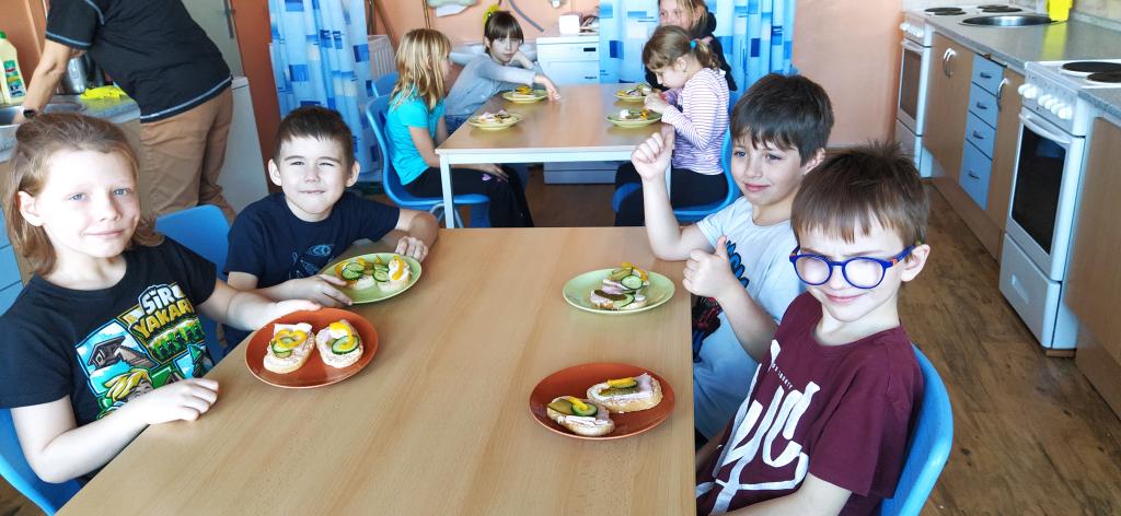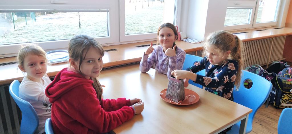 V předvánočním čase jsme si s Medvíďátky užili příjemné a radostné dopoledne plné pohody, zpěvu a tvoření. Nejprve jsme se sešli u vánočního stromečku, kde jsme si společně s dětmi z celé školy zazpívali vánoční koledy a naladili se na sváteční atmosféru. Poté jsme se přesunuli do kuchyňky, kde na děti čekala praktická a velmi oblíbená činnost – vaření. Vzhledem k blížícím se vánočním svátkům a Silvestru se děti učily připravit pomazánku na chlebíčky – dovednost, která se jim v tomto svátečním období jistě bude hodit. S radostí se děti pustily do práce, která je bavila. Každý si tvořil své vlastní chlebíčky, které si dozdobil podlé vlastní fantazie. Hotové pochoutky si s chutí snědly a některé děti si je odnesly domů, aby je mohly ochutnat i s rodiči. Celé dopoledne bylo nabité radostí, spoluprací a vánoční atmosférou.