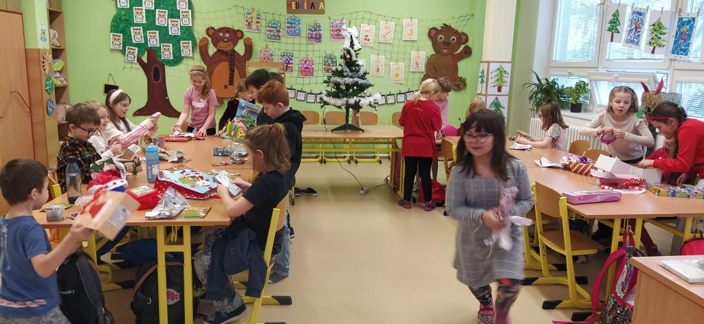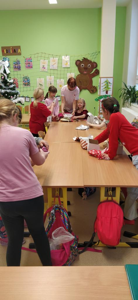 Předvánoční čas jsme si ve třídě Medvíďátek zpříjemnili milou vánoční besídkou, která proběhla v radostné a pohodové atmosféře. Společně jsme si uvařili voňavý čaj, u kterého jsme si povídali a užívali si klidné chvíle. Velkým potěšením bylo ochutnávání výborného vánočního cukroví, které pro děti s láskou připravili maminky a tatínkové. Dětem cukroví velmi chutnalo a děkujeme rodičům za jejich ochotu a spolupráci. Nechyběl ani zpěv vánočních koled, který navodil tu pravou sváteční náladu. Poté přišel dlouho očekávaný okamžik – rozdávání dárečků. Radost v dětských očích byla tou nejkrásnější odměnou. V závěru svátečního dopoledne jsme se společně vydali do kina na pohádku s názvem Cukrkandl, která byla kráskou tečkou za naším vánočním setkáním. Děti si ji velmi užily.