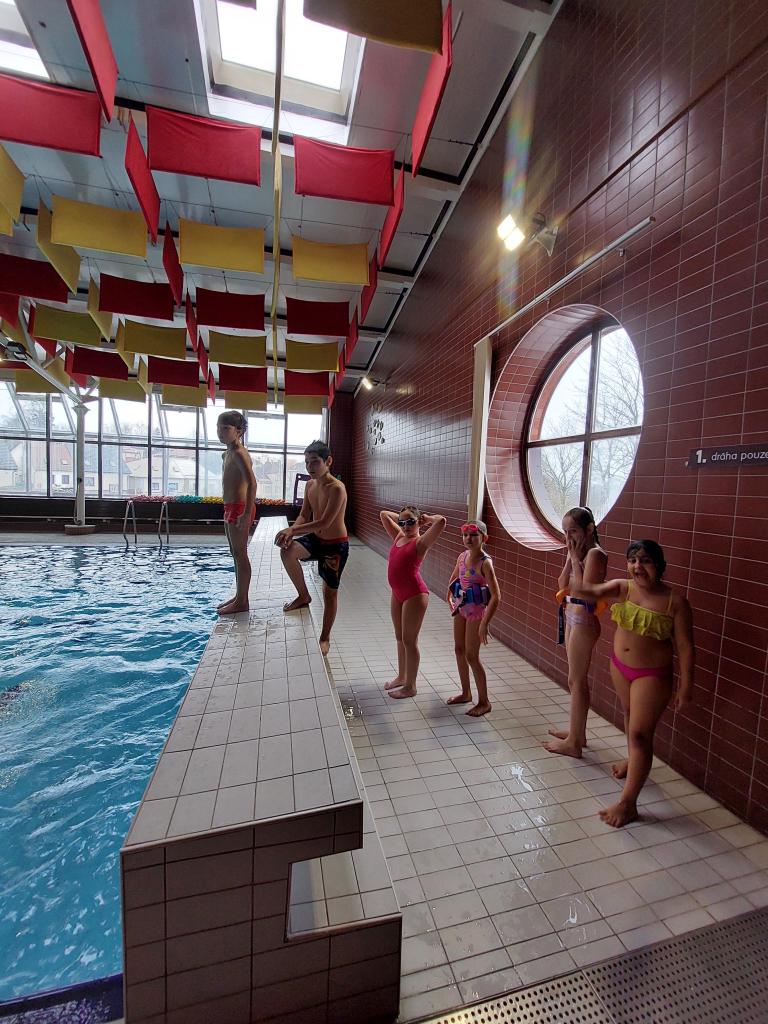 Poslední dny před jarními prázdninami jsme si zpříjemnili plaveckým výcvikem, který jsme měli tento týden hned dvakrát. Paní plavčice nás zkoušeli z toho, co jsme se během výcviku naučili: splývání, skok do vody, plavecké styly. Nechyběla ani zábava ve formě her a soutěží. Většina z nás jsou už šikovní plavci, někdo se ještě pohybuje ve vodě s pomocí plaveckých pomůcek, ale veliký pokrok jsme udělali všichni. Mokré vysvědčení je tomu důkazem!