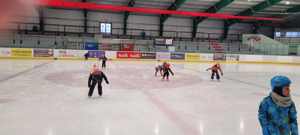 Plavání vystřídalo bruslení a děti si to náramně užívají. Každému to jde jinak, ale všichni se navzájem podporují. Ti, co už to bruslí úplně sami, pomáhají těm méně zkušeným bruslařům. Všichni dělají pokroky, ať už menší či větší. Důležité je, že si společně užíváme sportovní zážitky jako parta.