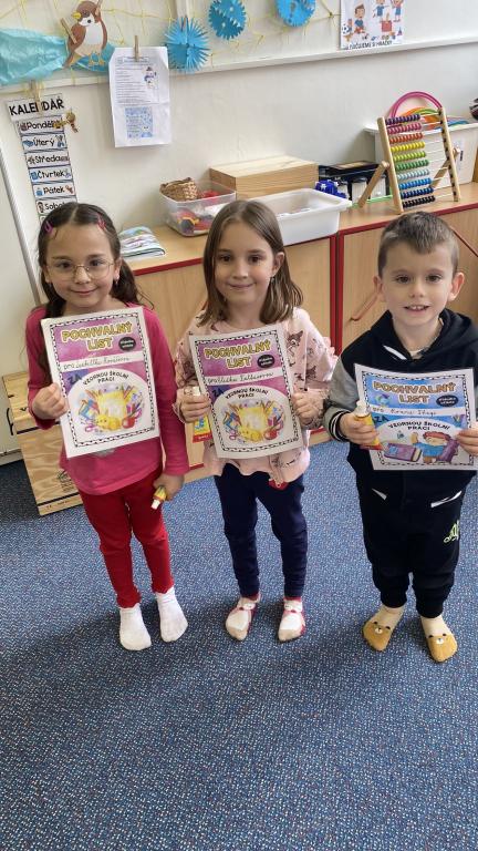 Za své pololetní snažení dostaly i ty nejmenší dětičky naší školy svá "vysvědčení" - pochvalné listy s dárečky, ze kterých měly velkou radost!