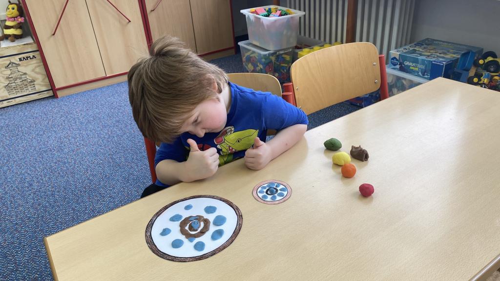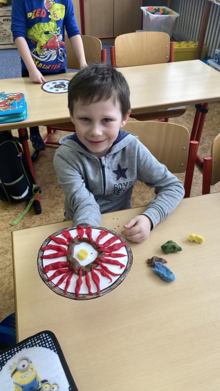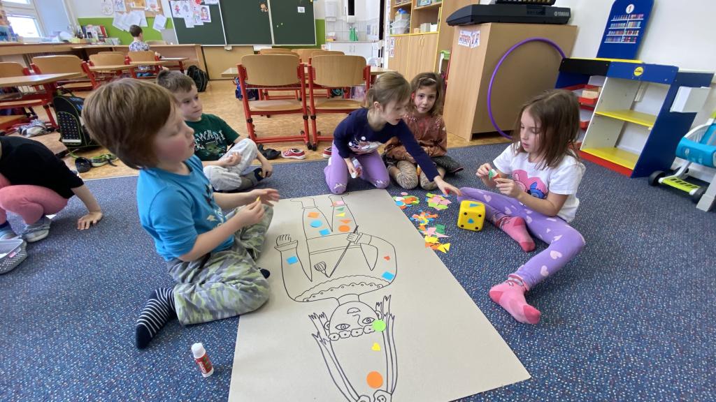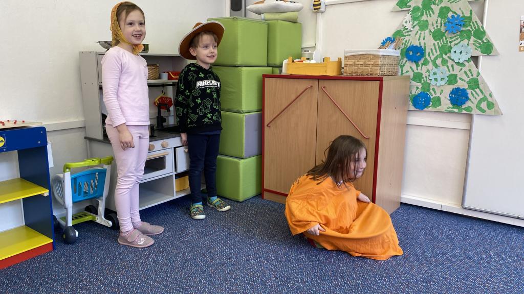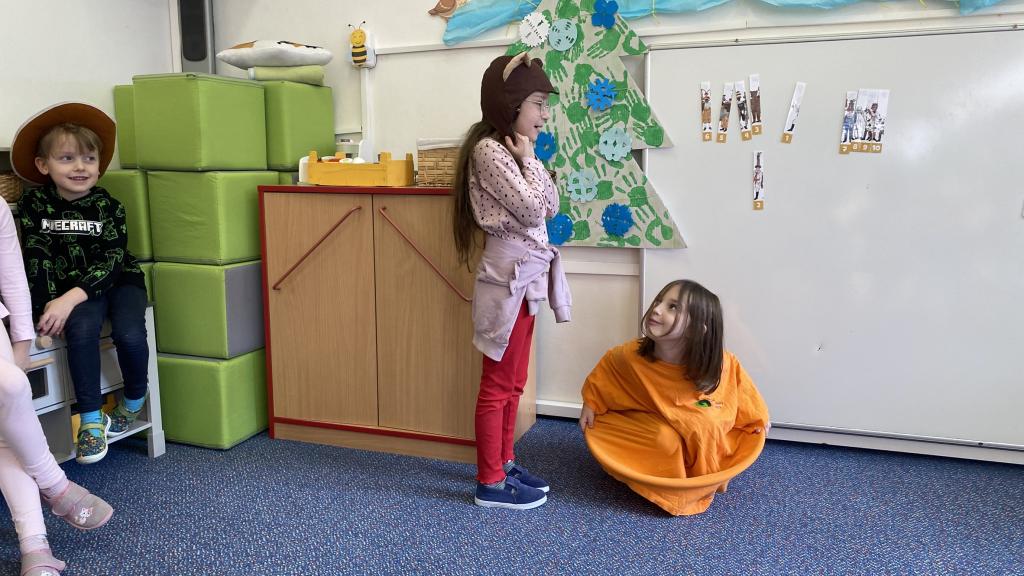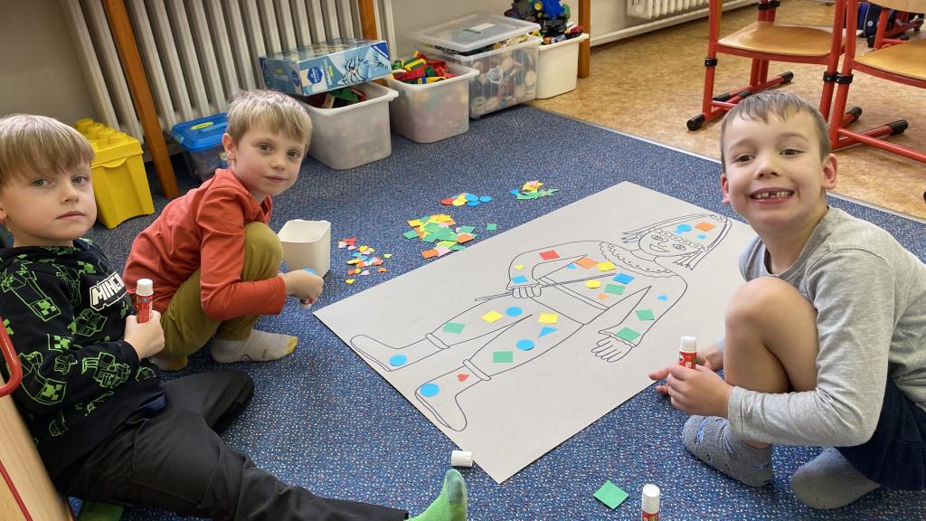 Program jsme zahájili pohádkou O koblížkovi, protože právě koblihy, koláče a další dobroty jsou neodmyslitelnou součástí masopustního období. Povídali jsme si o tom, proč se masopust slaví a jaké zvyky k němu patří. Děti si poté vyrobily barevné čepice, jaké nosí Laufr, a naučily se také jeho veselý taneček. Nechybělo ani tvoření z modelíny – modelovali jsme koláče a společně je počítali. Při této aktivitě jsme si procvičili nejen jemnou motoriku, ale i předmatematické dovednosti.Společně jsme si představili jednotlivé masopustní postavy, které si děti vybarvily podle vlastní fantazie. Na závěr jsme procvičili geometrické tvary, kterými jsme ozdobili postavu Laufra.