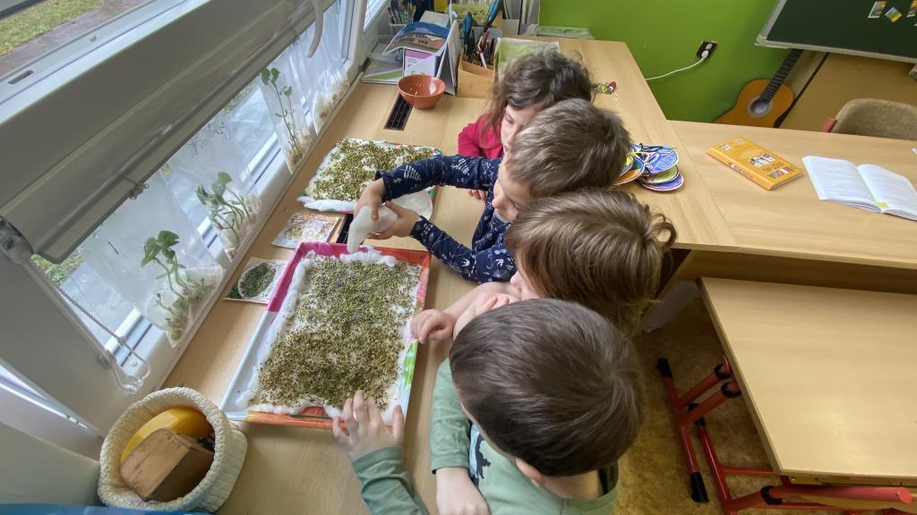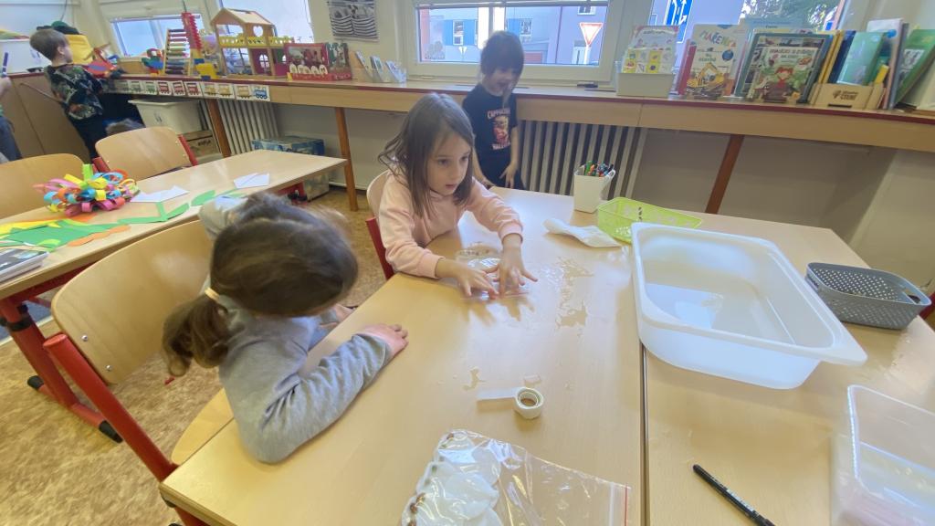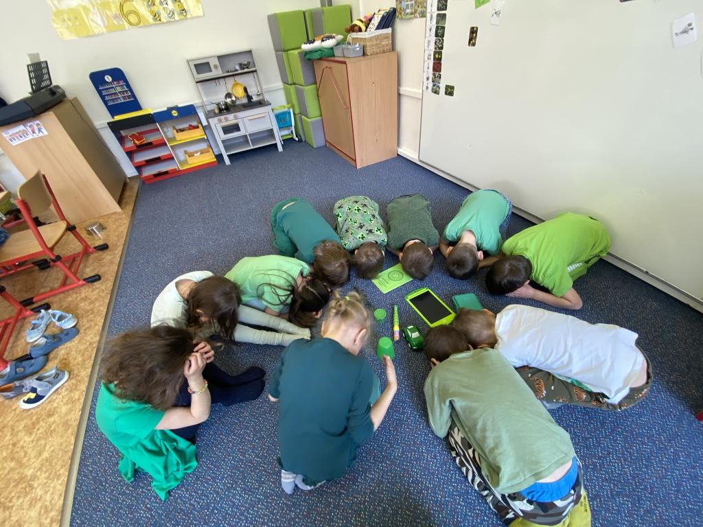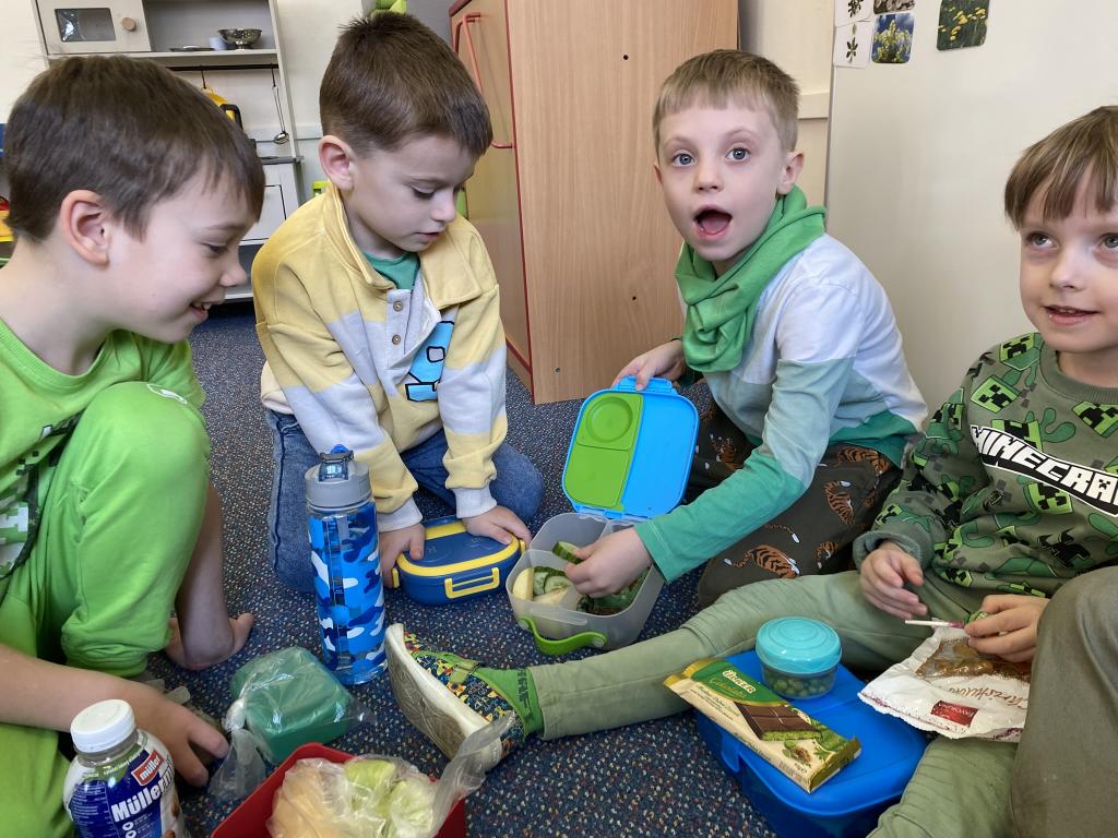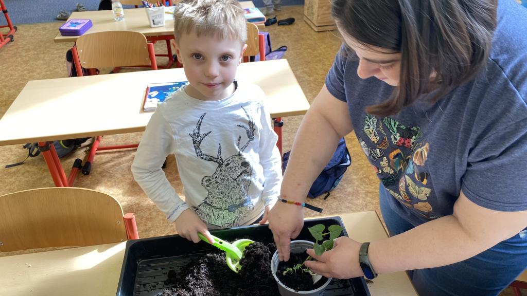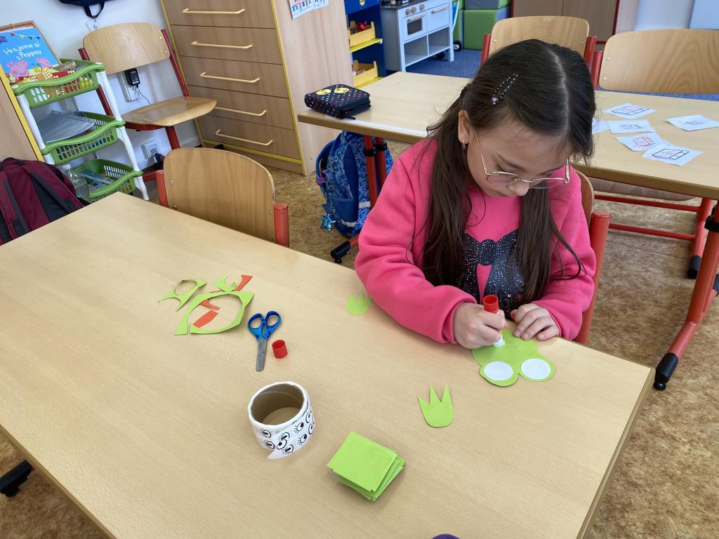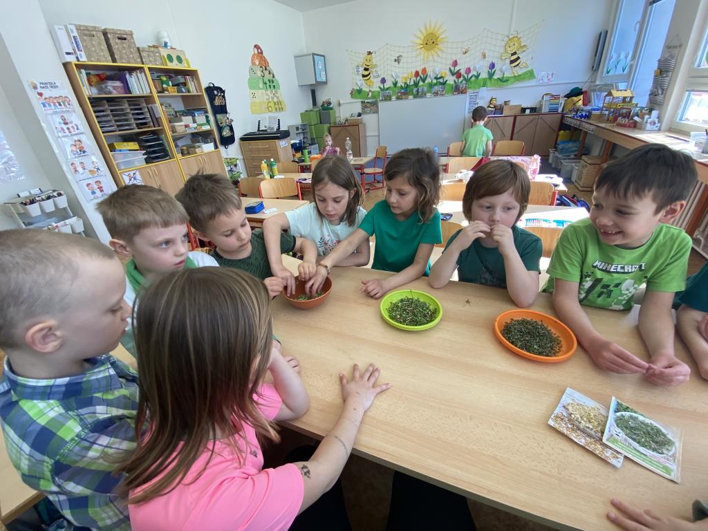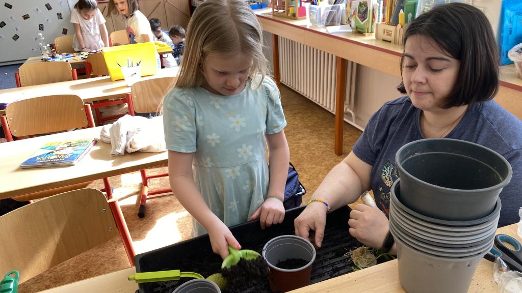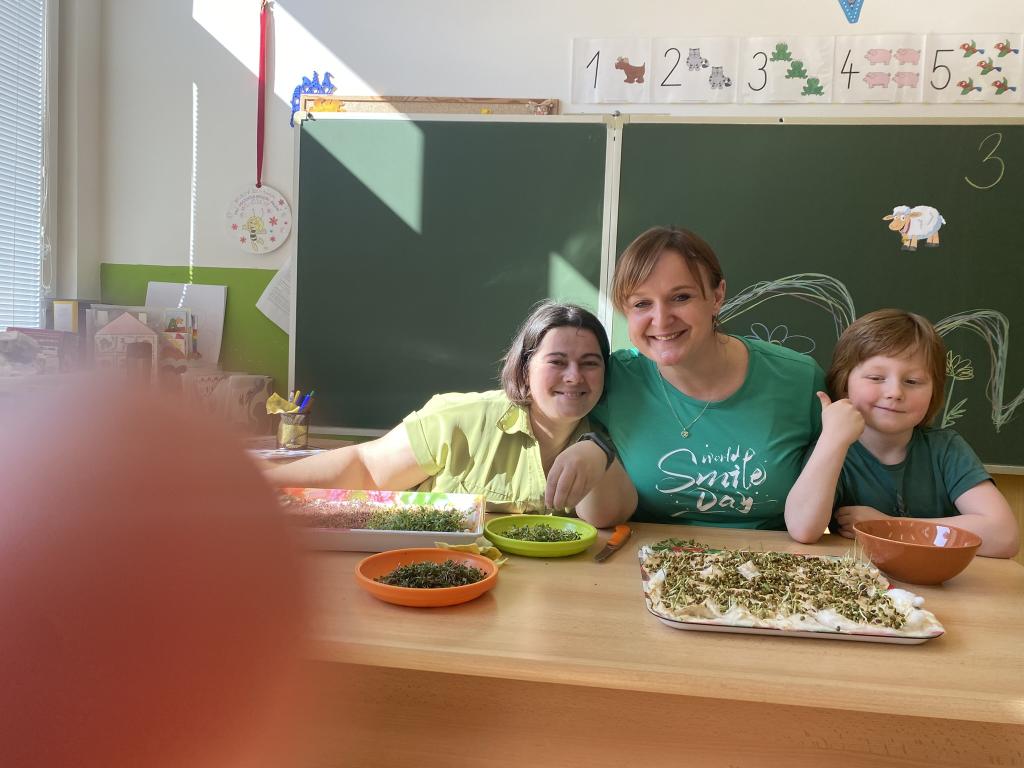 V pondělí 16. března odstartoval projektový týden, který rozzářil nejen naše přípravné třídy, ale i celou školu barvami jara. Objevování, dobrá nálada a společné aktivity nás těšily celý týden. Děti chodily v zeleném oblečení a přinesly dokonce i zelené svačiny, které jim moc chutnaly. Jako všechny učebny ve škole, tak i naše dostaly symbolický jarní klíč, který se objevil na dveřích naší třídy. Nebyl to obyčejný klíč — reagoval na splněné jarní výzvy. A že jich bylo! S dětmi jsme se starali o rostlinky – vyseté hrášky a fazolky. Děti měly radost, jak vše klíčí a roste. Po přesazení do hlíny si děti odnesly zelené květináčky domů. Na vatu jsme nechali také vyklíčit kadeřávek, čočku a mungo klíčky, na kterých jsme si s radostí po týdnu pěstování všichni pochutnali. Ve třídě jsme dělali další pestré aktivity spojené se zeleným týdnem – modelovali jarní obrázky, zpívali písničky o jaru, kreslili, vyráběli, četli příběhy a hráli si. Povídali jsme si o svátku svatého Patrika a plnili úkoly skřítka Leprikóna. Na památku jsme si namalovali kouzelné trojlístky, které nám budou připomínat důležité mezilidské hodnoty, jakými jsou láska, přátelství a pomoc druhým. Zelený týden jsme si všichni moc užili. Doufáme, že nám přinesl nejen radost, ale i zdraví a plno jarní energie!