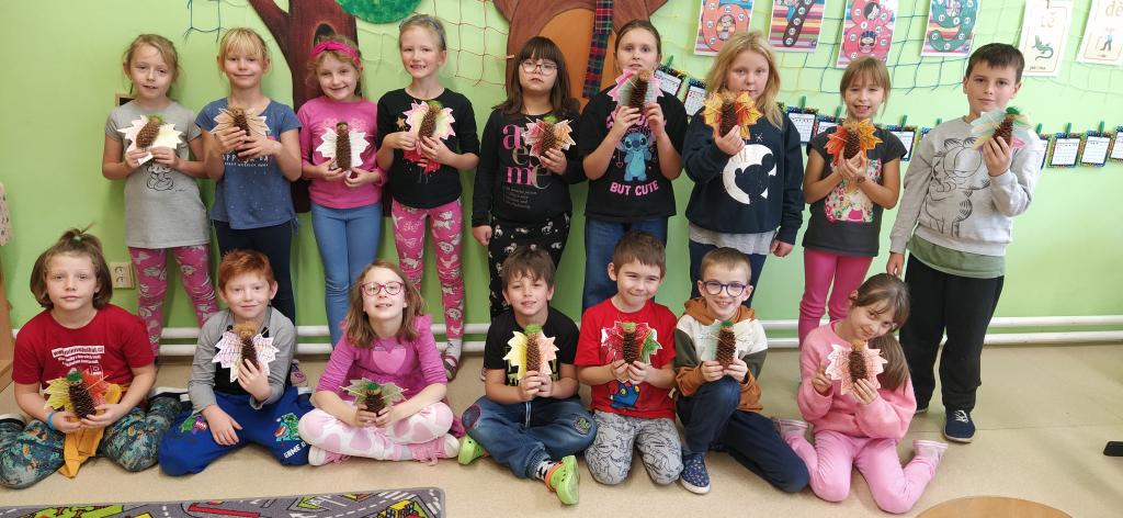 Ve třídě II. B to vonělo podzimem a kouzly! Děti se pustily do tvoření svých vlastních podzimních skřítků – a ne ledajakých! Každý skřítek byl jedinečný a vznikl z přírodních materiálů, které jsme si nashromáždili. Základem pro skřítky byly šišky a oříšky, ze kterých vznikla jejich tělíčka a hlavičky. Ručičky dětem nahradily špejle a o kouzelná křídla se postaraly papírové