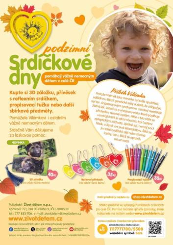 Srdíčkový den - sbírkaObecně prospěšná společnost Život dětem - pomoc nemocným, handicapovaným a opuštěným dětem v rámci celé České republiky |