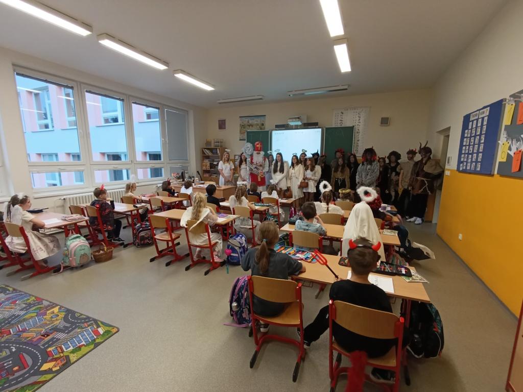 U prvňáčků to dnes vypadalo jako v opravdové pohádce – místo školáků se lavice zaplnily malými čertíky a andílky.