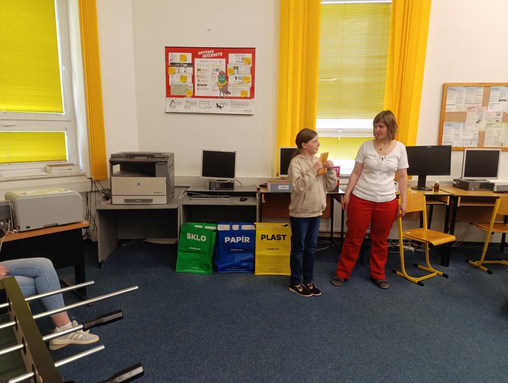 „Neopouštěj staré věci pro nové, i když barva šediví a prýská… “ zněla část písně Uhlíře a Svěráka dne 5. 5. 2025 speciálními třídami na ZŠ Poličská. Tato slova nás zavedla do celoškolního projektu o problematice vzniku, třídění a recyklace odpadů. Poutavou formou prostřednictvím prezentace, videí, písní a zábavných her se žáci vydali cestou tříděných a netříděných odpadů. Učili se, jak roztřídit odpad podle barvy kontejnerů. Byli překvapeni, že např. z plastových lahví se dá vyrobit čepice, šála, mikina, apod. Zjistili, kde končí nevytříděný odpad z popelnice a za jakou dobu se rozloží. Při hře „odpadové pexeso si procvičili paměť, zručnost a pečlivost uplatnili při vystřihování různých druhů odpadů a lepení na příslušné barevné čtvrtky, které představovaly „kontejnery“. Svůj odhad si vyzkoušeli při seřazování odpadů podle doby rozpadu. Svoji fantazii a výborné nápady využili při tvorbě „reklamních letáků“, které určitě podnítí i největší „netřídiče odpadů“ k zamyšlení. Prakticky si všichni roztřídili hromádku odpadů do příslušných nádob. Pro některé žáky bylo překvapením, že takový obal od tvarohové svačinky „Mišánek“ se vytřídí hned do tří kontejnerů (plast - kelímek, papír – obal na kelímku, kov - víčko). Nakonec jsme si všichni zatančili a zazpívali písničku: To je fér: „… Třídit odpad, to je fér. Všechno zblajzne kontejner. HIA, HUA, HI…“.