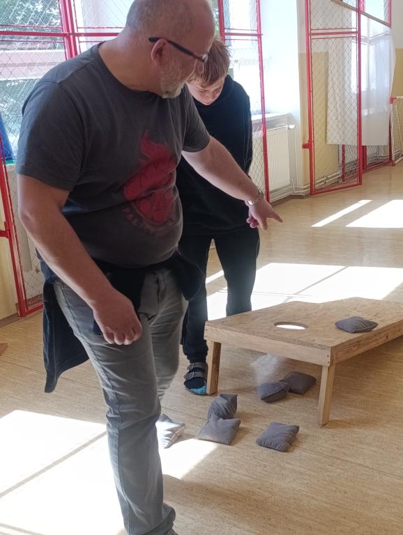 Zahráli si cornhole, házecí hru zaměřenou na přesnost, a také si vyzkoušeli střelbu z kuličkové pistole na terč, která patřila mezi nejoblíbenější stanoviště. Velký úspěch měly i hry, které si žáci s pomocí pedagogů sami vyrobili. Velké dřevěné domino vzniklo z odřezků palubek ze stavby venkovní učebny a žáci se na jeho výrobě aktivně podíleli. Podobně si užili i velké Člověče, nezlob se, kde figurky byly vyrobeny z PET lahví – opět dílo šikovných rukou našich žáků. Na dalším stanovišti si žáci s nadšením zahráli oblíbenou stolní hru pukec. Posledním stanovištěm byly piškvorky s kameny, které nabídly prostor pro logické myšlení i přátelské soupeření.