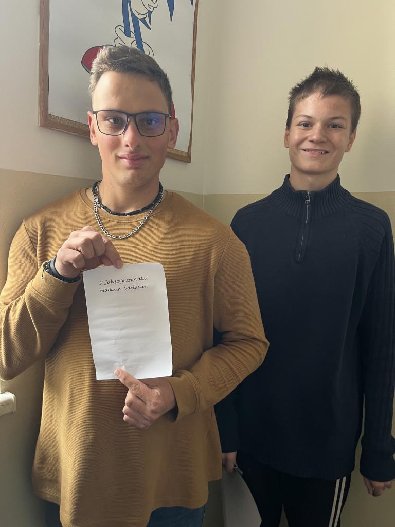 křížovky, kde měli žáci uplatnit získané informace – podařilo splnit a všechny zúčastněné čekala zasloužená odměna v podobě medaile sv. Václava a sladkosti. Páteční den jsme si všichni pěkně užili a můžeme se tak těšit na nadcházející víkend.