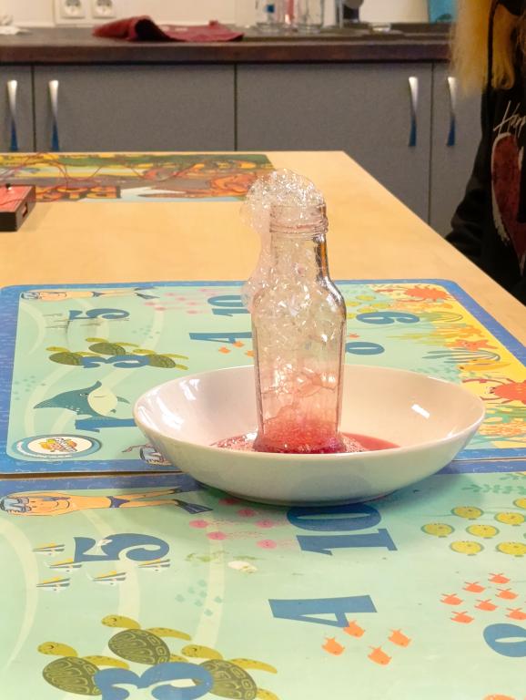 Ve středu 1. 10. 2025 se žáci II. třídy naší školy v rámci „Týdne poznání“ zúčastnili programu Hravá laboratoř v interaktivním centru Planeta Hlinsko. Hned na začátku se žáci dozvěděli co je sopka a činnost sopky. Následně v laboratoři si žáci vyzkoušeli vulkanickou činnost a následnou erupci sopky. Pomocí jedlé sody, octa a potravinářského barviva si vytvořili vlastní model a sledovali „výbuch“.