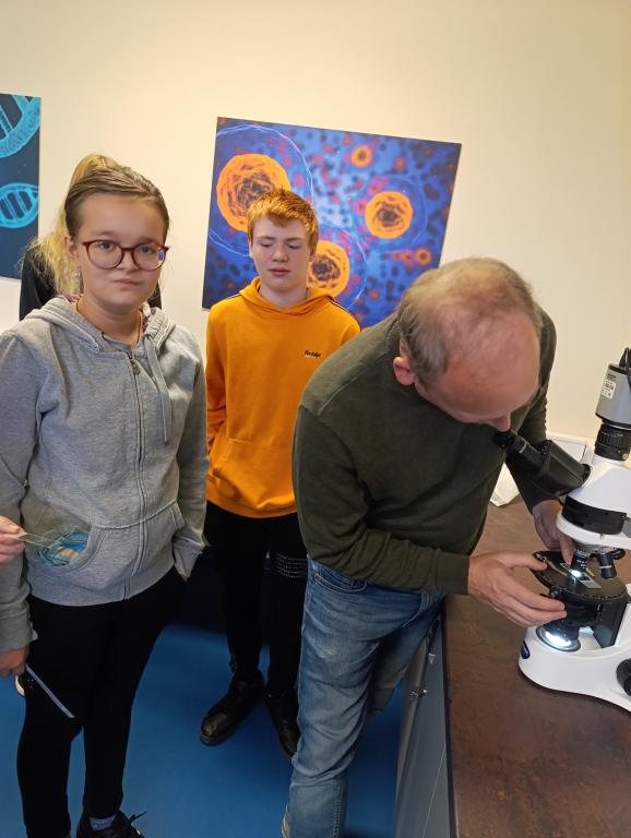 Na závěr si pod mikroskopem prohlíželi senný nálev. Každý z žáků si odebral vlastní vzorek, připravil si ho na sklíčko a pak pozoroval pod mikroskopem mikroorganismy, jako například trepku velkou nebo krásnoočka. Žáci si přednášku velice užili a odnesli si spoustu nových poznatků i zážitků.
