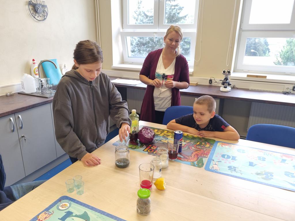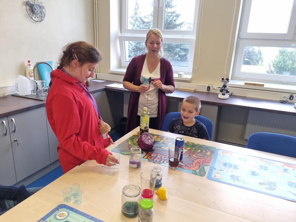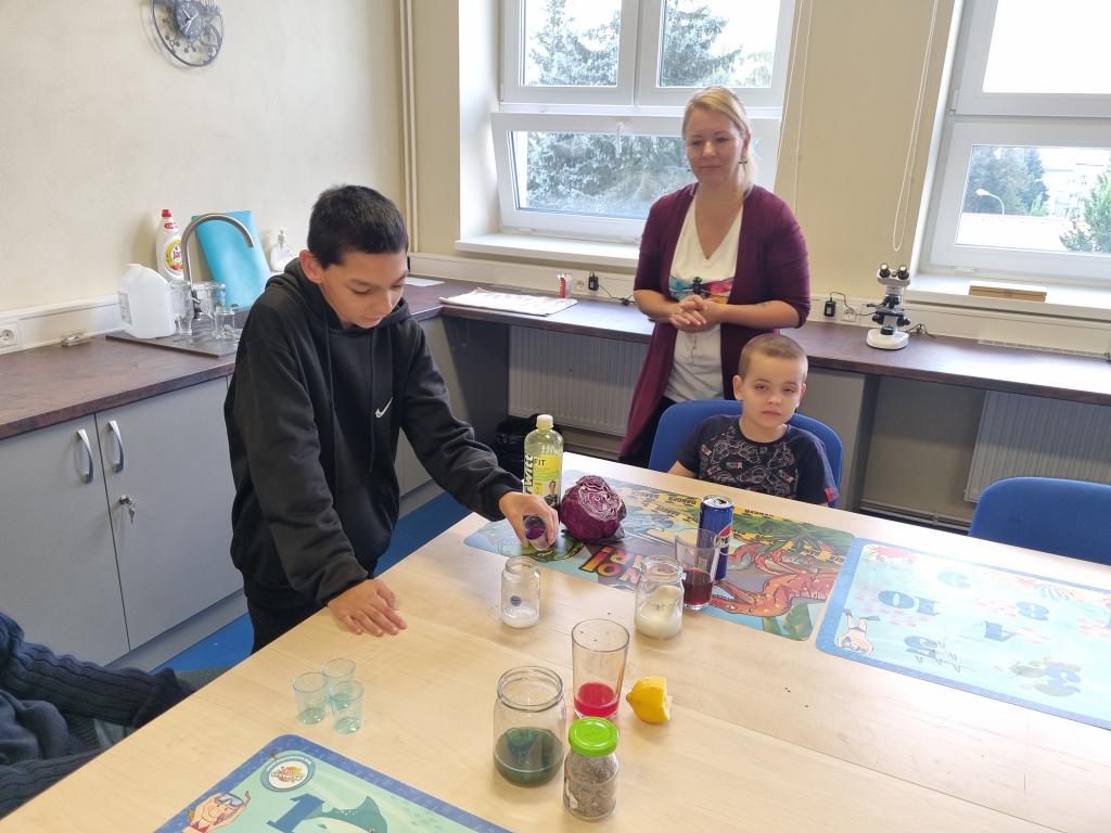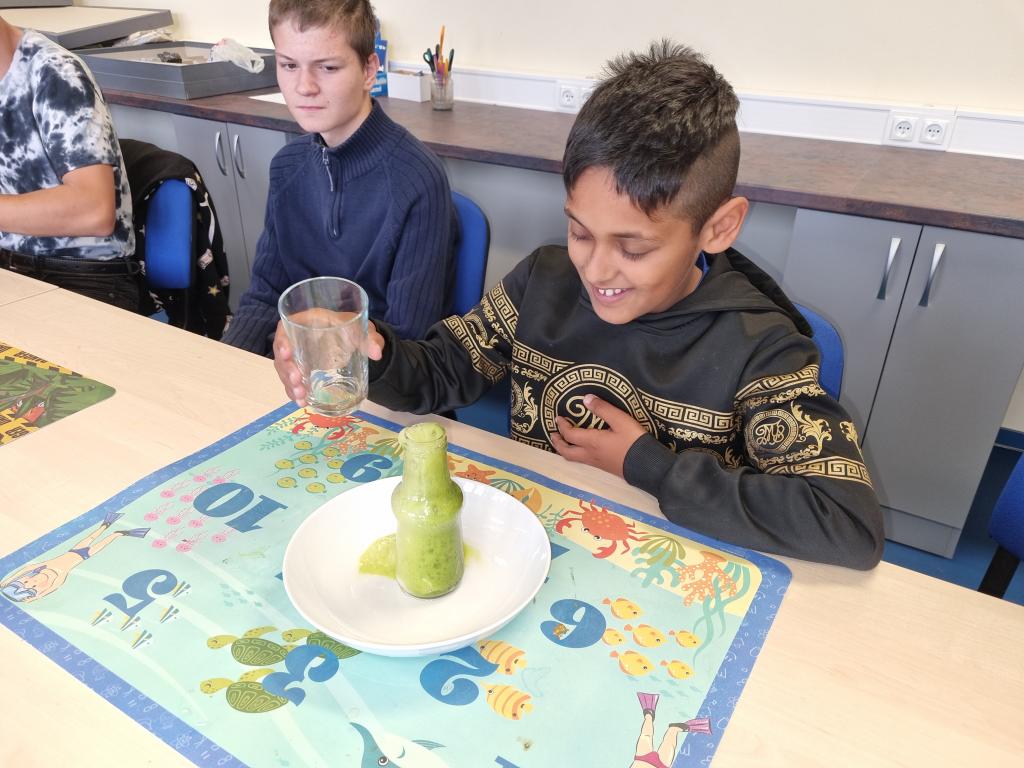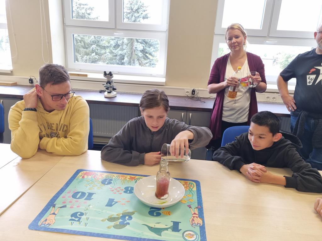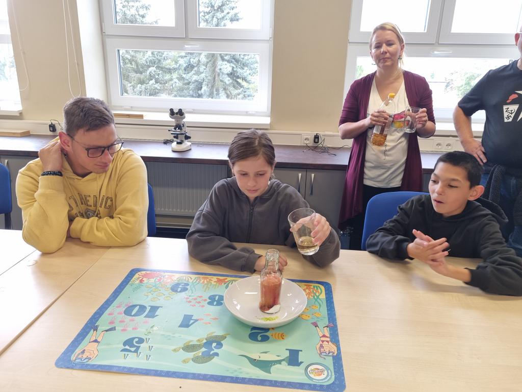 Poté zkoumali, jak různé potraviny obarvují vodu. Pozorovali, jak se voda mění podle přidaných surovin – vznikaly zajímavé barvy a efekty.