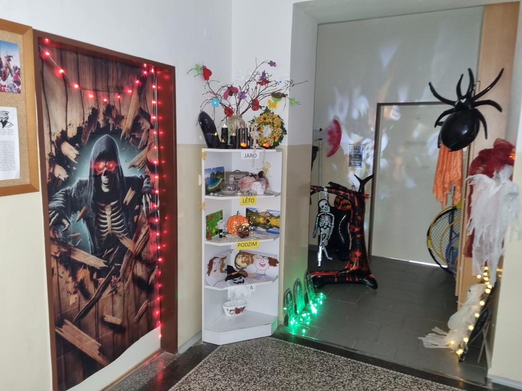 Poslední říjnový den se naše škola proměnila v říši plnou duchů, čarodějnic, kostlivců i upírů. Chodby školy zaplnila strašidla všech podob a velikostí – od klasických masek až po oblíbené filmové hrdiny. Konala se totiž oblíbená oslava Halloweenu, kterou si všichni žáci i učitelé užili naplno. Už od rána panovala ve škole tajemná a veselá atmosféra. Žáci přišli v originálních kostýmech a soutěžili o titul nejstrašidelnější, nejoriginálnější a nejvtipnější masky. Porota měla plné ruce práce, protože nápaditost žáků byla letos opravdu neuvěřitelná. Během dopoledne se konala řada halloweenských her a soutěží – například Chytání pavouků, Závody na košťatech, Nejlepší zombie tanec nebo napínavý Závod nejrychlejšího pavouka. Ve třídách si žáci vyráběli papírové netopýry, strašidla a povídali si o původu tohoto svátku.