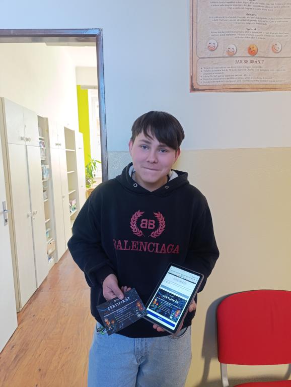 Dne 6. 11. 2025 žáci naší školy byli seznámeni s aplikací Digitální gramotnost od společnosti Glitr s.r.o. pod vedením lektorky Ing. Natálie Parlagi. Po úvodním vysvětlení se vydali po škole hledat QR kódy, podle instrukcí uvedených v aplikaci. Každý nalezený a naskenovaný kód je posunul o krok dál v plnění digitálních úkolů. Po úspěšném splnění celé aktivity získali žáci certifikát. Na závěr proběhla společná zpětná vazba, ve které žáci zhodnotili průběh i přínos programu.