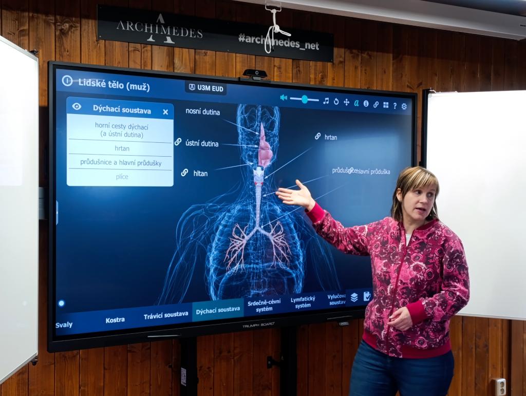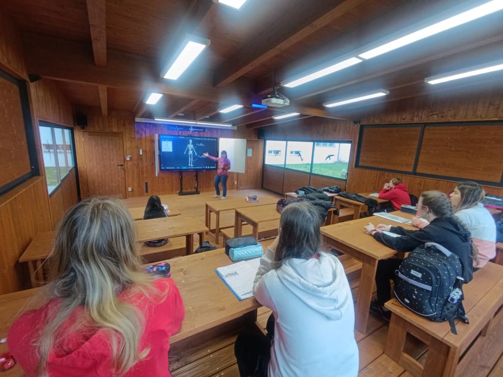 Dne 11. 11. 2025 jsme se žáky přesunuli s výukou do venkovní učebny Archimedes, která je součástí sítě ekologických a interaktivních učeben. V rámci výukového programu jsme si prohlédli model lidského těla, prozkoumali vývojová stádia plazů, vysvětlili si, co způsobuje skleníkový efekt a proč je pro nás důležitý.