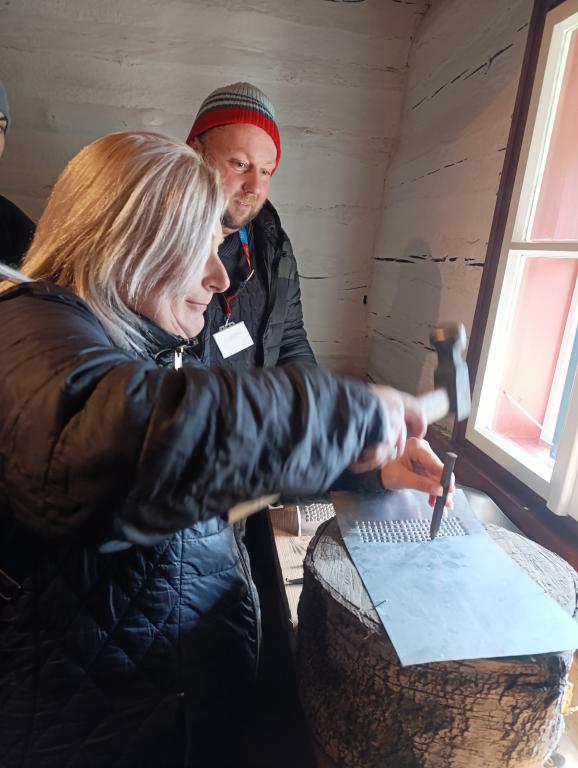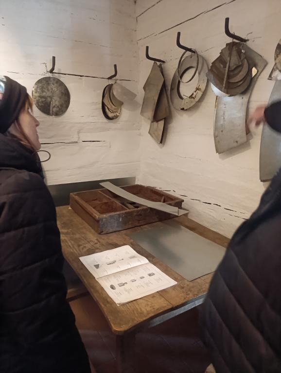 Žáci se dozvěděli co je praní prádla na máchadlech – dodnes zachována na břehu řeky Chrudimky, poznali tradiční nástroje (pernice, trdlo) a prohlédli si tkalcovský stav a tkaní žinilky. V kovotlačitelské dílně si paní učitelka s paní asistentkou prakticky vyzkoušeli proražení dírek do kovového plátu. Na závěr proběhla „poznávačka“ tradičních předmětů, mezi ně patřily: ošatka, lívanečník, pilka (zlodějka), kleště na rukavice, motovidlo, zvonec, nůžky – kratiknot, valcha, hříbek na štupování, lis na tvaroh, trdlo, dřevěná panenka – válek a zouvač na holiny.
