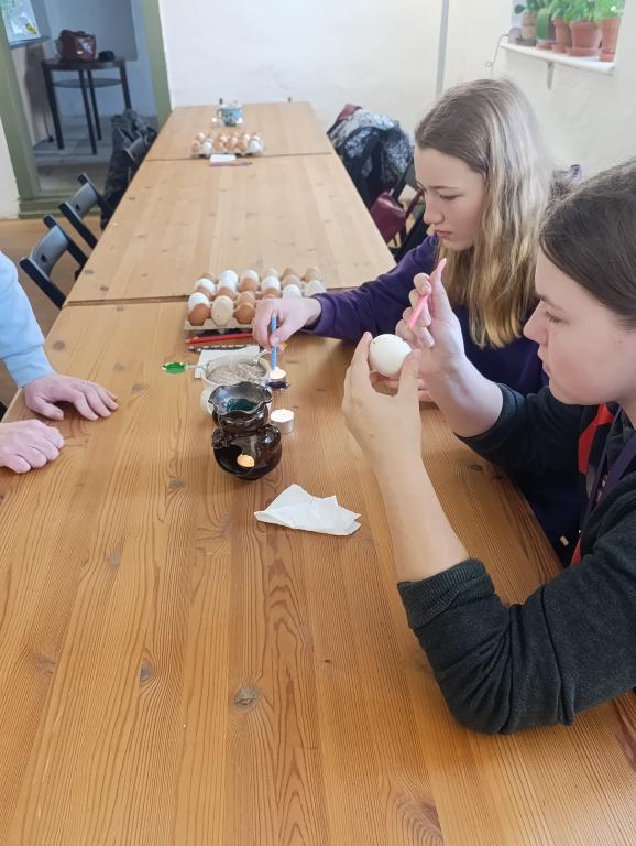 Dne 17. 3. 2026 se žáci naší školy zúčastnili zajímavého programu zaměřený na tradice a zvyky spojené s Velikonocemi. Hned na úvod si žáci vyzkoušeli práci v tvořivé dílničce, kterou vedly Andrea Svobodová a Vendula Tesařová. Pod jejich vedením si každý namaloval vyfouklé vajíčko voskovou technikou. Žáci se dozvěděli, jaké vzory se při zdobení kraslic používají a jak se liší v jednotlivých regionech. Další část exkurze patřila poutavému výkladu, kterým nás provedl Mgr. Pavel Bulena. Ten žákům přiblížil význam svátků Velikonoc nejen z křesťanského hlediska, ale také z pohledu lidových tradic. Vysvětlil například, proč se plete pomlázka a proč se s ní na Velikonoční pondělí ženy „šlehají“, co symbolizuje darování vajíčka a jaký význam měl tento dar v minulosti – často nesl i osobní vzkaz obdarovanému. Žáci se také dozvěděli, jakými různými technikami se vajíčka zdobila a jaké materiály se k tomu využívaly. Nechybělo ani povídání o tradičním velikonočním pečivu. Žákům bylo vysvětleno proč se peče mazanec, beránek či jidáše a jaký mají tyto pokrmy symbolický význam. Exkurze byla pro všechny velmi přínosná a obohatila žáky o nové poznatky z oblasti lidových tradic. Zároveň jim umožnila prožít velikonoční zvyky nejen teoreticky, ale i prakticky.