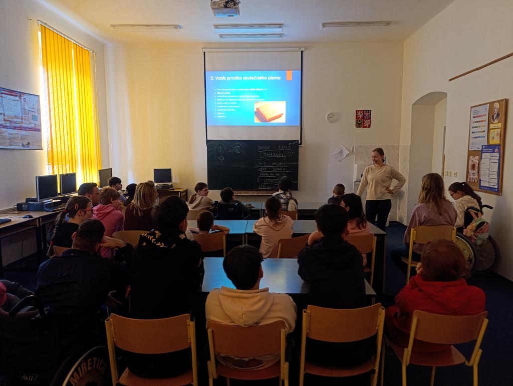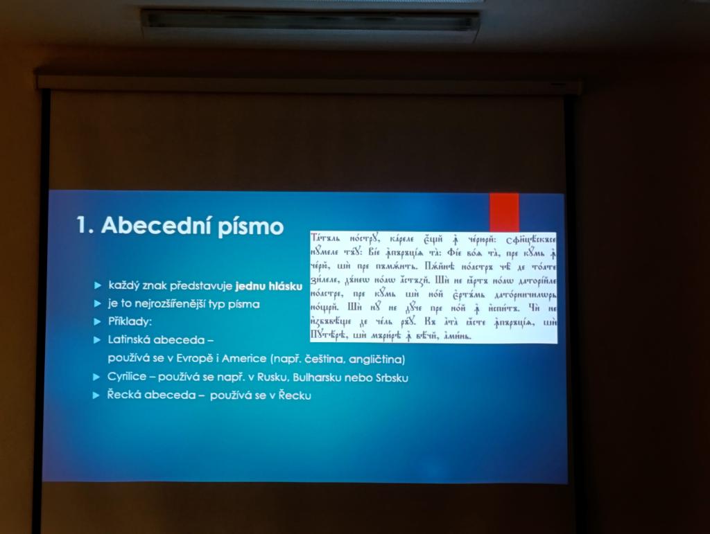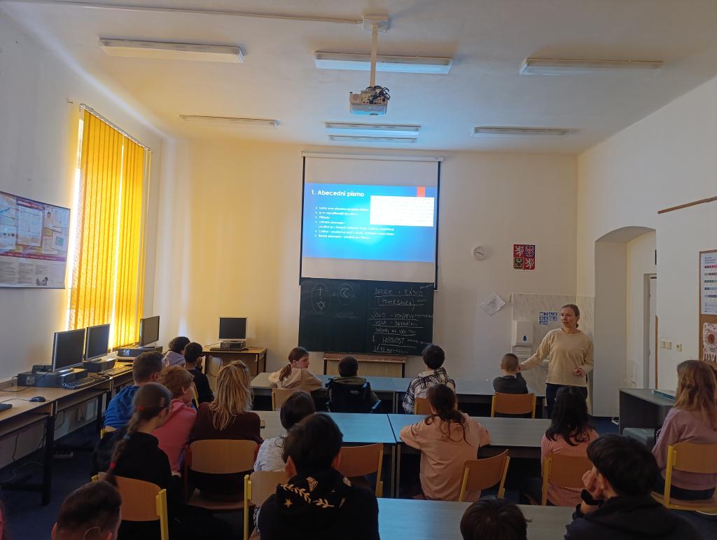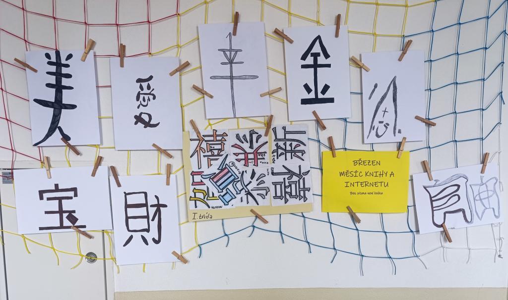 Březen je měsíc, kdy si připomínáme význam knih a internetu. Kniha ani internet by nemohly vzniknout bez písma. A tak si žáci naší školy prezentací připomněli vznik a vývoj písma. Novou informací bylo i to, že ne všechna písma označují jednotlivé hlásky, ale jsou i druhy písma, kdy znaky označují slabiky nebo přímo slova, hebrejské písmo má znaky pro souhlásky a samohlásky se doplňují až při čtení. Následně si žáci vybrali znak z čínského písma, výtvarně ho ztvárnili a z výtvorů vznikla nástěnka, která jim celý měsíc připomíná, proč je březen měsícem knihy a internetu.