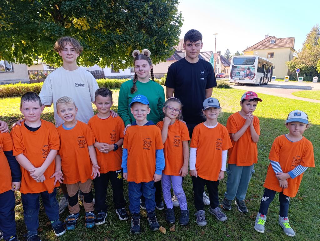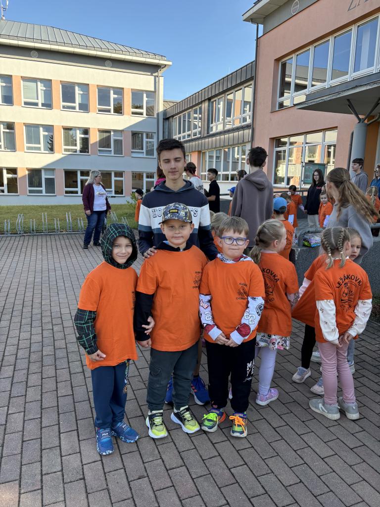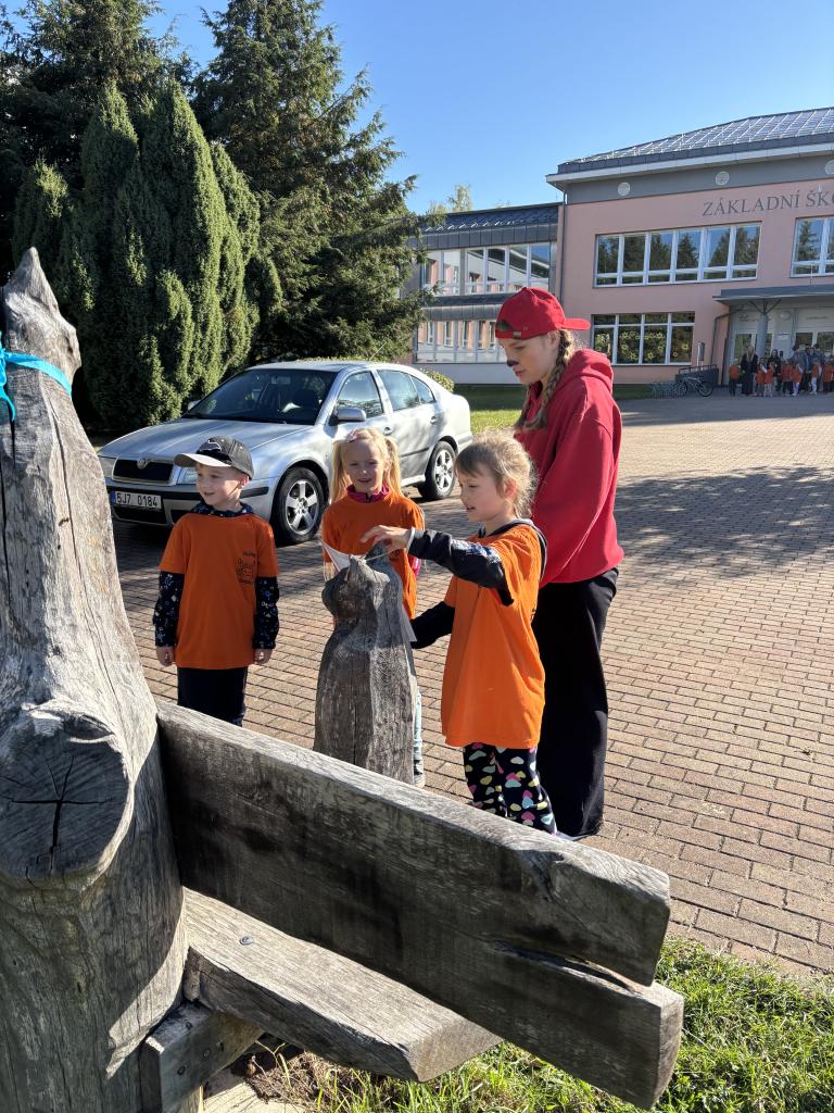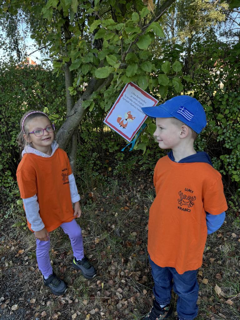 V pátek 19. 9. využili naši velcí patroni (deváťáci) krásného počasí a připravili si pro obě třídy prvního ročníku (Krabíky i Chobotničky) pohádkovou stezku.