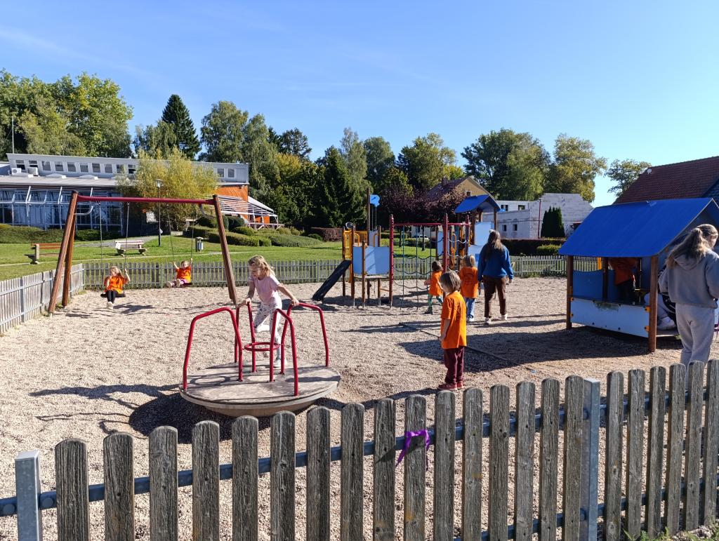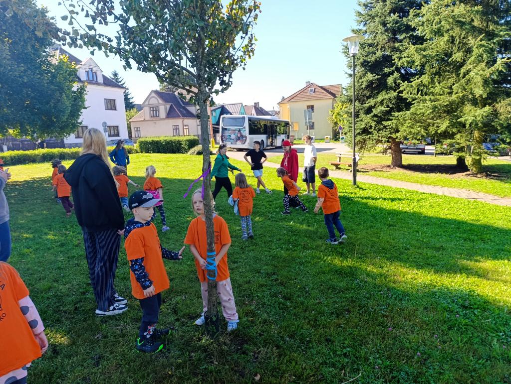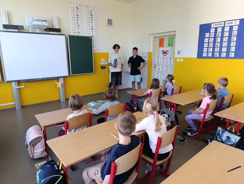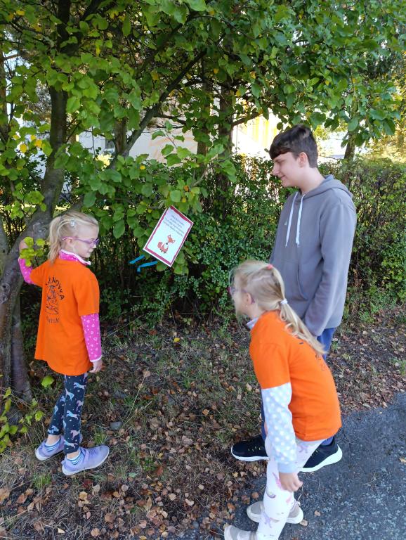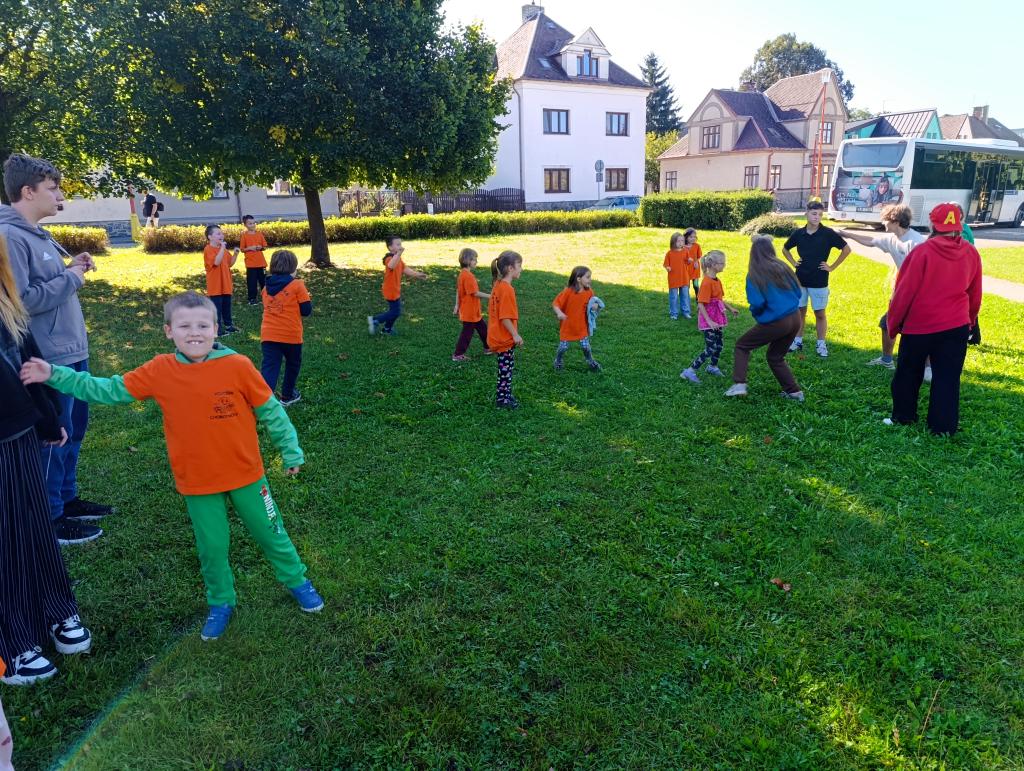 V pátek 19. 9. využili naši velcí patroni (deváťáci) krásného počasí a připravili si pro obě třídy prvního ročníku (Krabíky i Chobotničky) pohádkovou stezku.