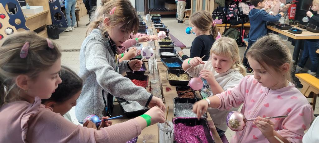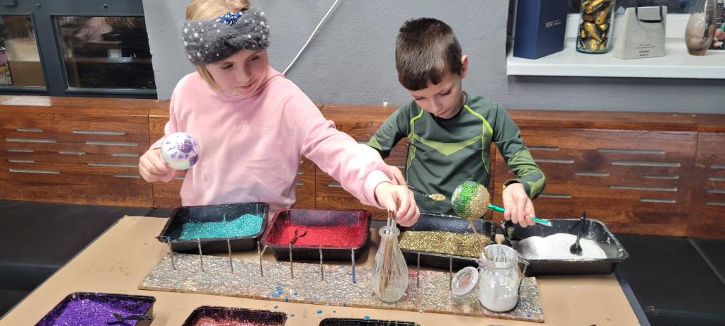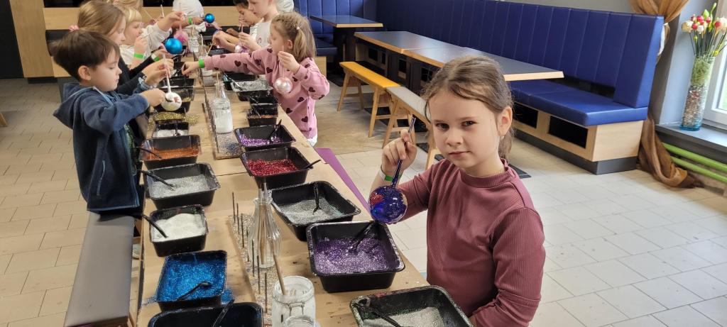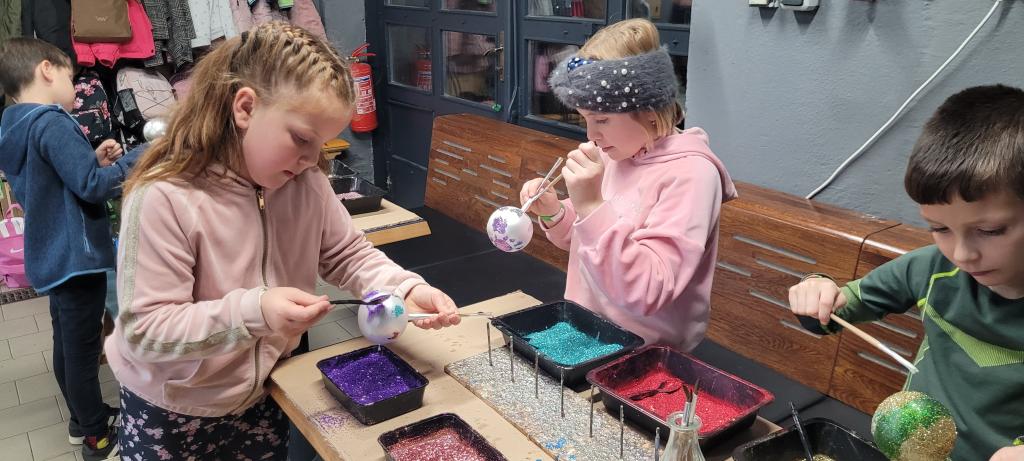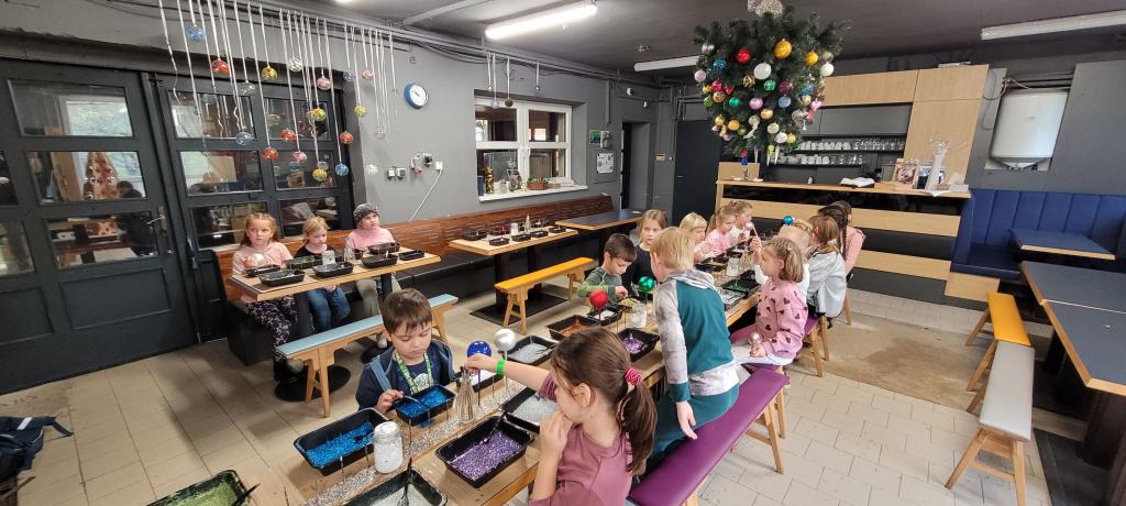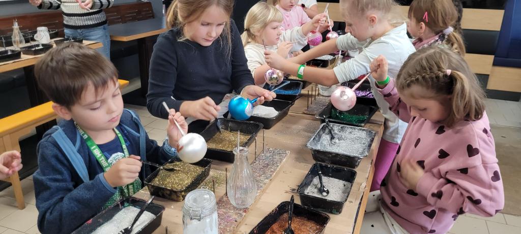 A protože jsme nechtěli zůstat pozadu, dostali jsme možnost ozdobit si vlastní kouli. Třpytky byly rázem úplně všude – na stole, na rukou, na oblečení, ve vlasech i na botách. Ale výsledek stál za to. Každá ozdoba byla originální a jedinečná a děti nadšené. Z exkurze jsme si odnesli nejen krásné ozdoby, ale i trošku vánoční nálady a nezničitelný třpytivý lesk, který nám vydrží ještě dlouho. Všem můžeme návštěvu jen a jen doporučit.
