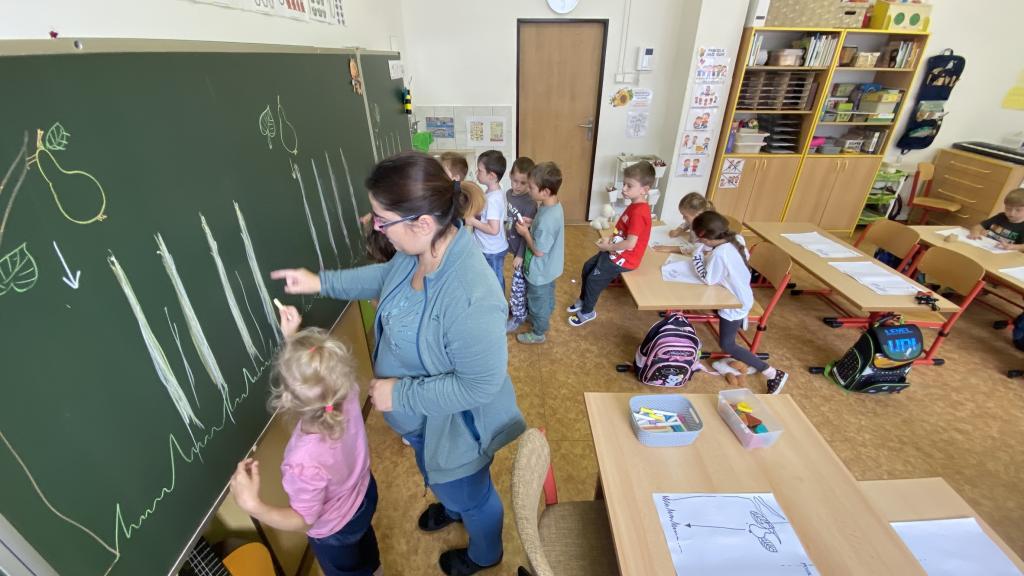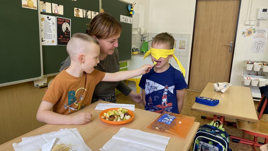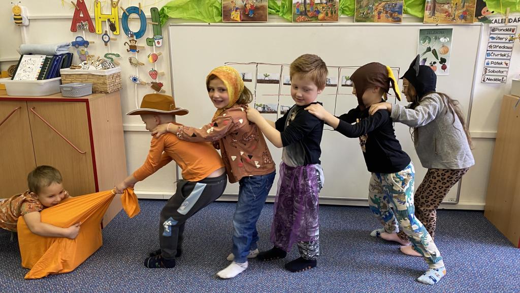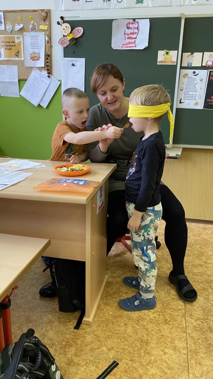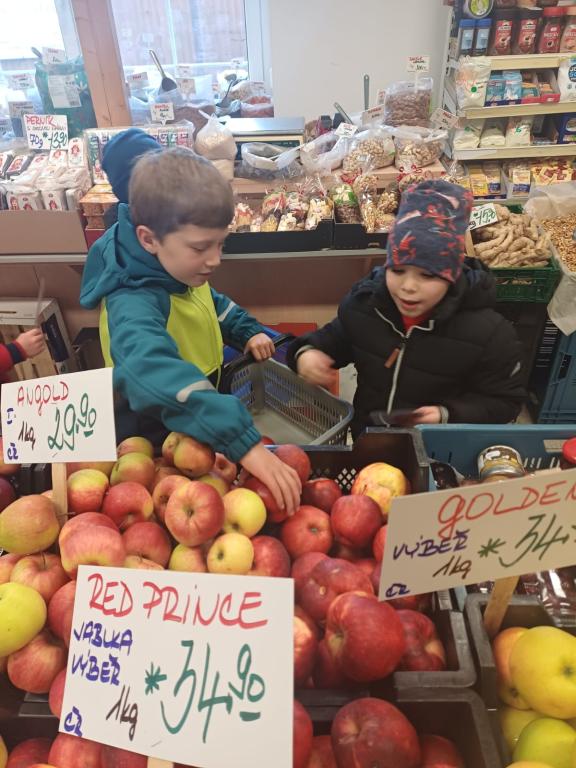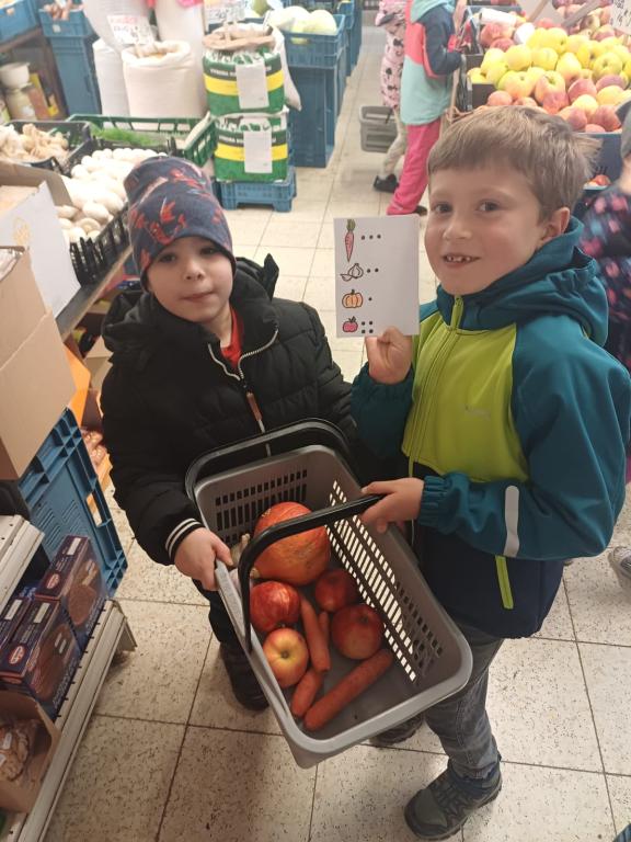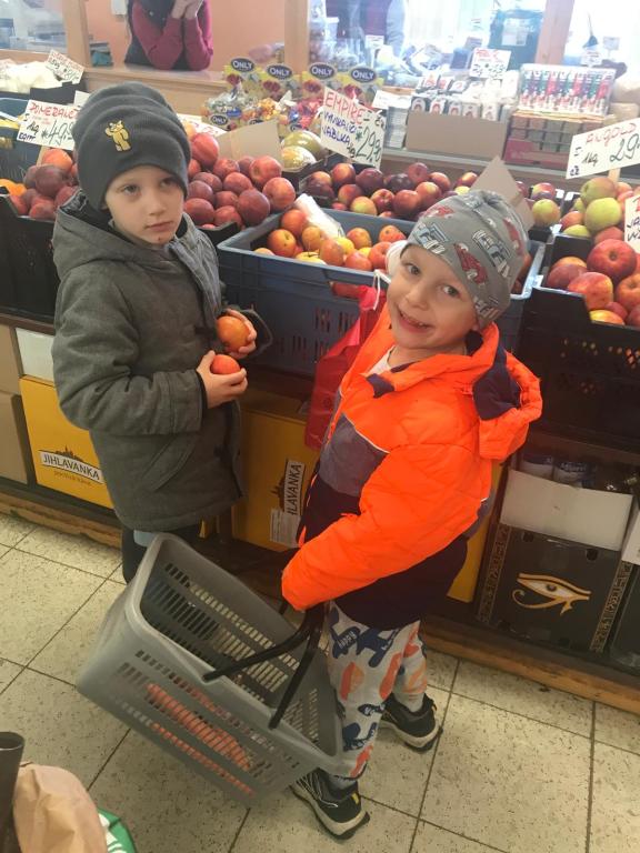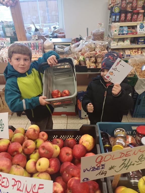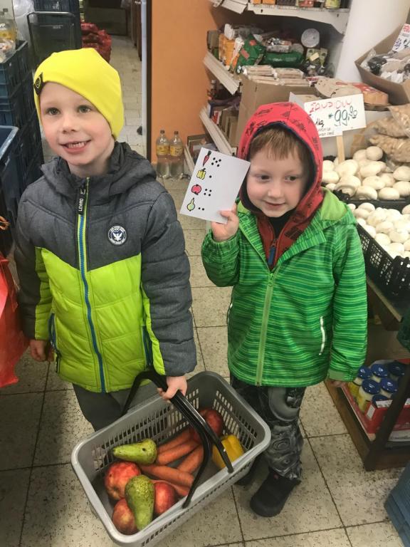 V uplynulých dnech jsme si s našimi předškoláčky povídali o ovoci a zelenině. Děti se učily básničky, písničky a hravou formou poznávaly a pojmenovávaly různé druhy ovoce a zeleniny. Zapojením smyslů (chuť, čich, hmat) rozlišovaly, jak ovoce a zelenina vypadá, voní a chutná. Nezapomněli jsme ani na výtvarné tvoření a dramatizaci. Pohádka O veliké řepě se dětem moc líbila. Měli jsme také možnost vyzkoušet si nákup ovoce a zeleniny v rodinném obchodě u Novotných. Děti dostaly obrázkový nákupní seznam s uvedeným počtem kusů. V obchodě se chopily košíku a vyrazily nakupovat. Z nákupu byly nadšené a měly radost, že ho zvládly. Toto téma nám poskytlo spoustu důležitých informací a děti se dozvěděly, že je důležité ovoce a zeleninu jíst, abychom byli všichni zdraví.