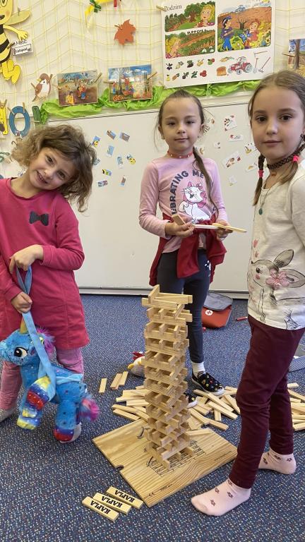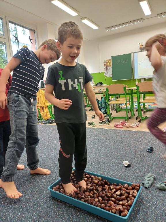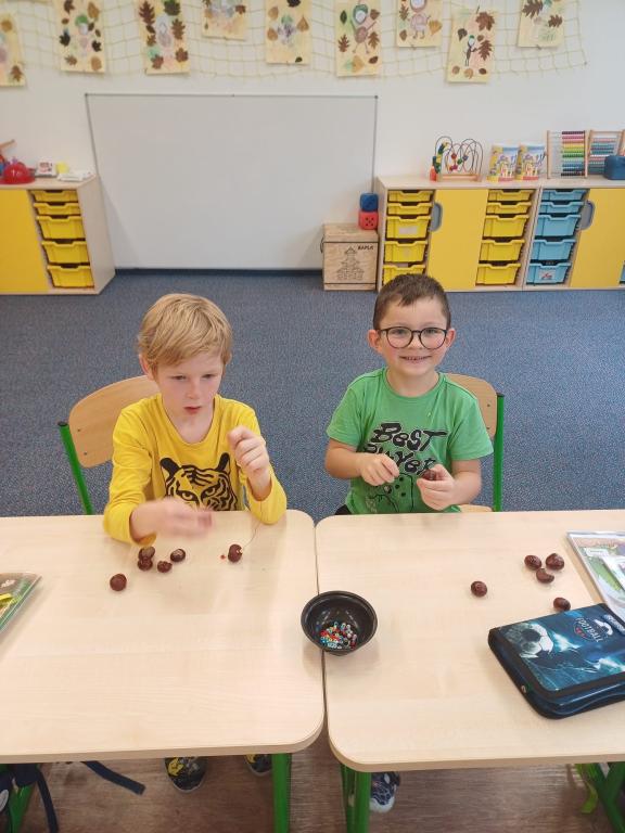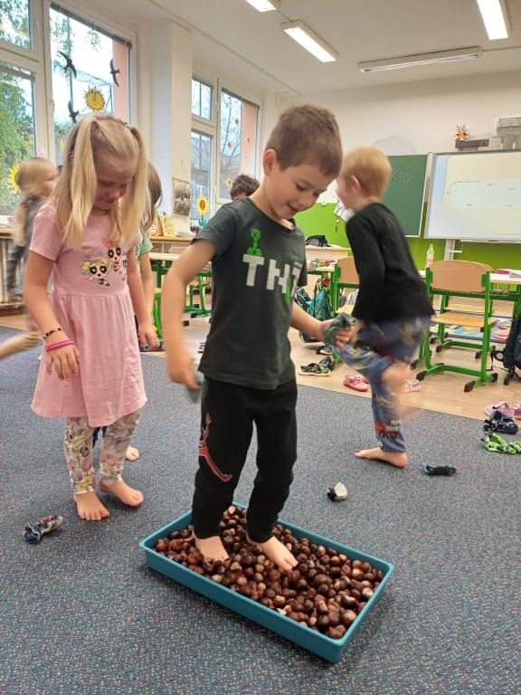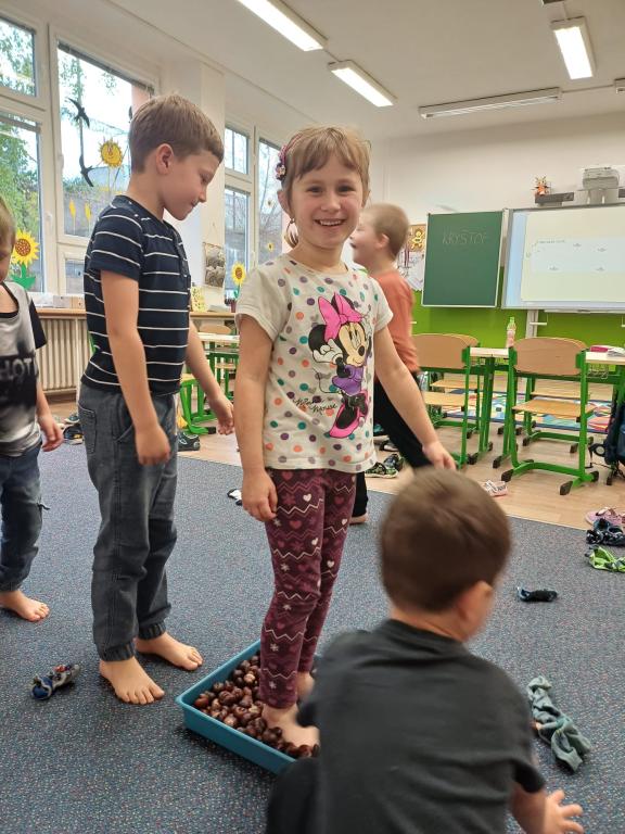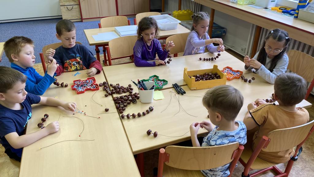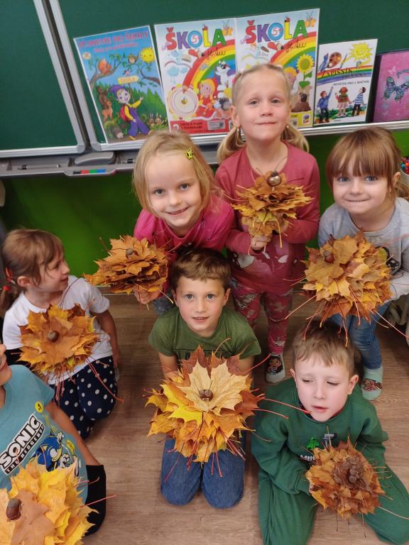 Podzimní dny přinesly mnoho námětů na hravé aktivity v přípravných třídách. Během rozmanitých činností se děti dozvídaly zajímavosti ze světa zvířat a přírody. V blízkém okolí školy poznávaly stromy, keře a podzimní plody. Ve třídě tvořily, zpívaly, četly pomocí obrázků, pilně plnily úkoly v pracovních sešitech a hrály veselé hry. Z jednotlivých činností si děti vyzkoušely také tvoření z kaštanů, frotáž listů, obtiskování ovoce či výrobu pestrobarevných dráčků. Podzimní aktivity se nám všem moc líbily. Děti si za své snažení zaslouží velkou pochvalu!