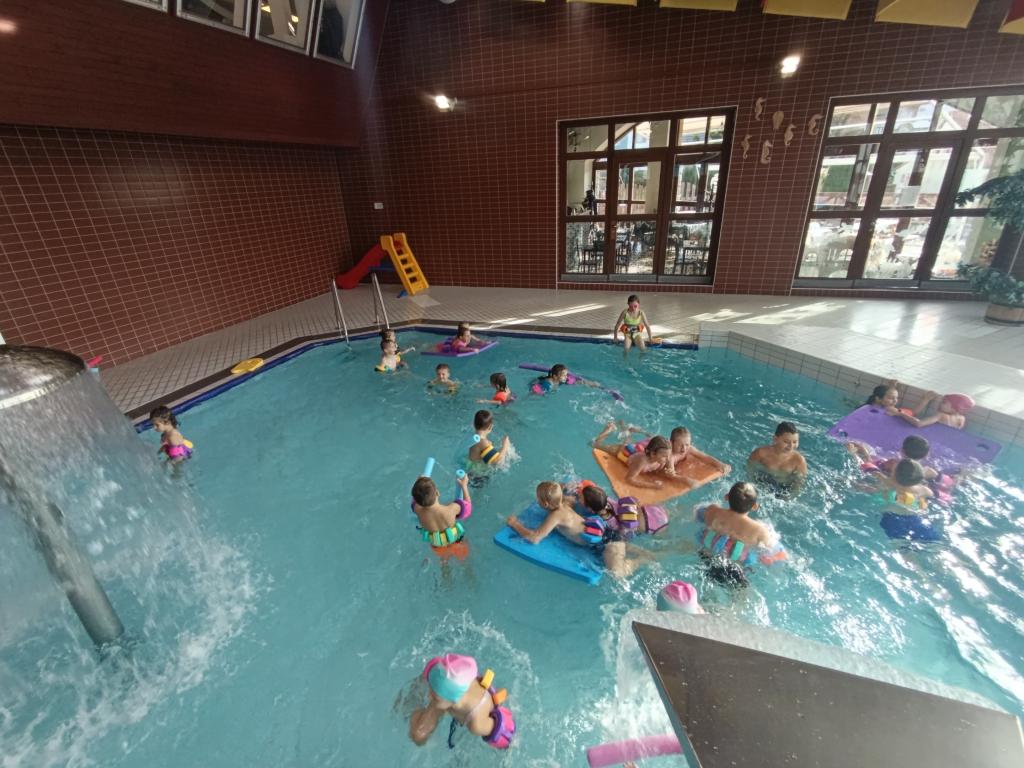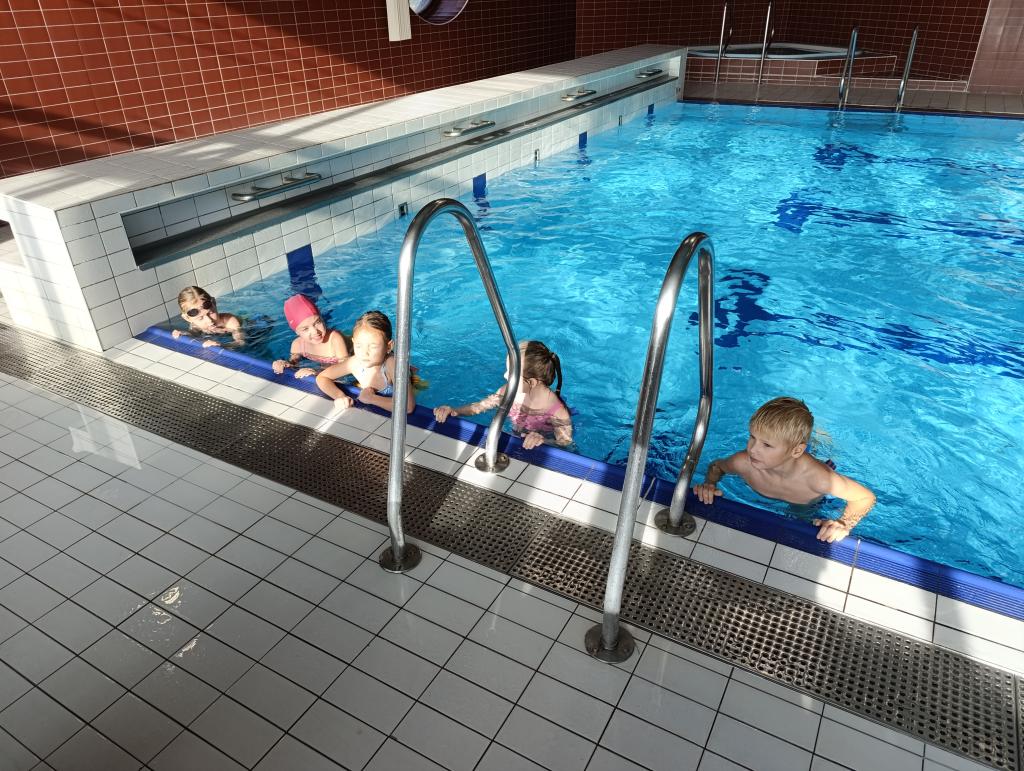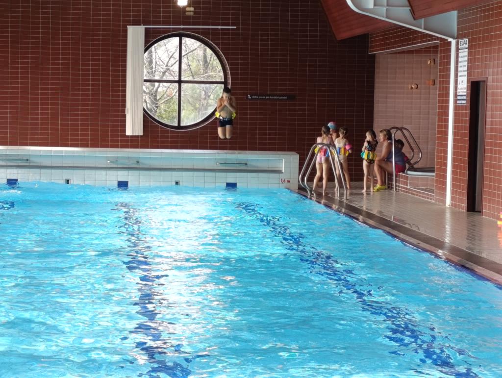 plaveckými pomůckami. Po 45 minutách si žáci odpočinuli v ohřívárně a nabrali tak síly na