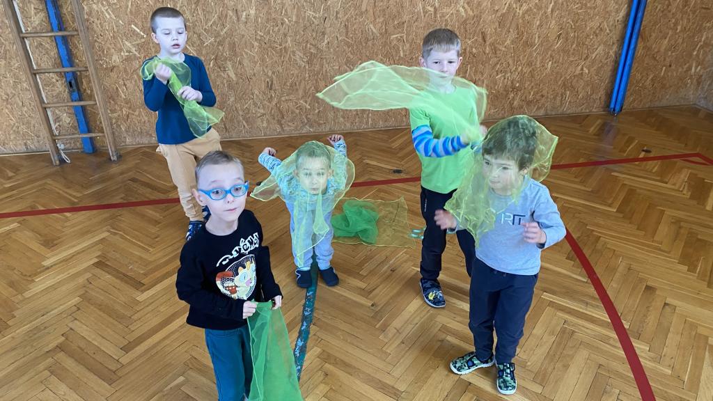 V pátek 14. 11. nás potěšily svoji návštěvou děti z MŠ Budovatelů. Společně jsme se vydali do naší oblíbené tělocvičny, kde nás čekala hodina plná pohybových her motivovaná tematikou Dráčků. Děti si zacvičily s barevnými šátky za doprovodu veselých písniček. Hrály pohybovou hru s tvary, ze kterých skládaly dračí ocásky. Trénovaly svoji obratnost při lezení na žebřinách a houpání na kruzích. Nechyběly ani míčové hry a dostatek volného pohybu. Společné cvičení se nám moc líbilo a už teď se těšíme, až nás mladší kamarádi zase navštíví.