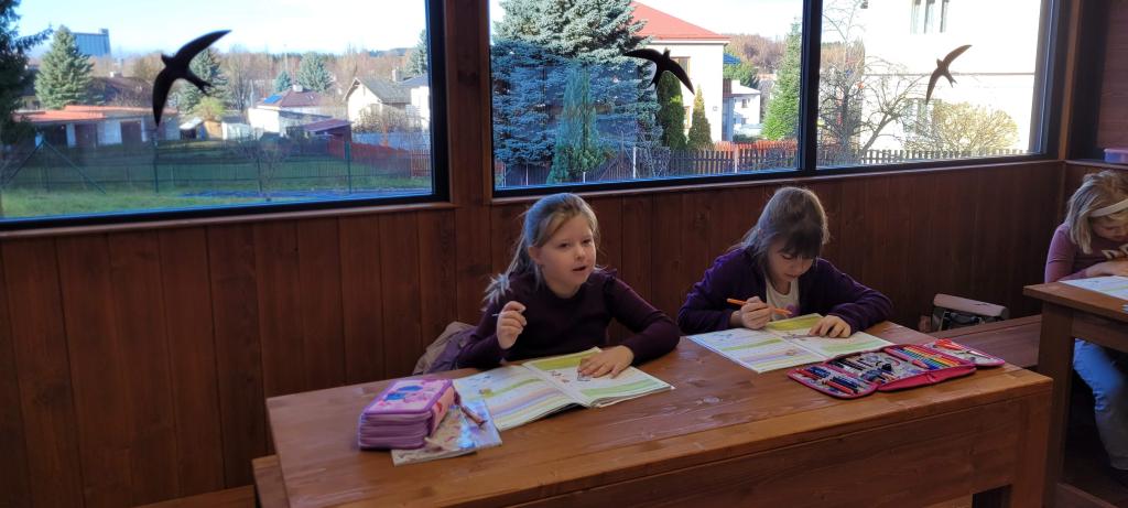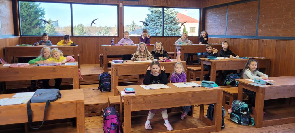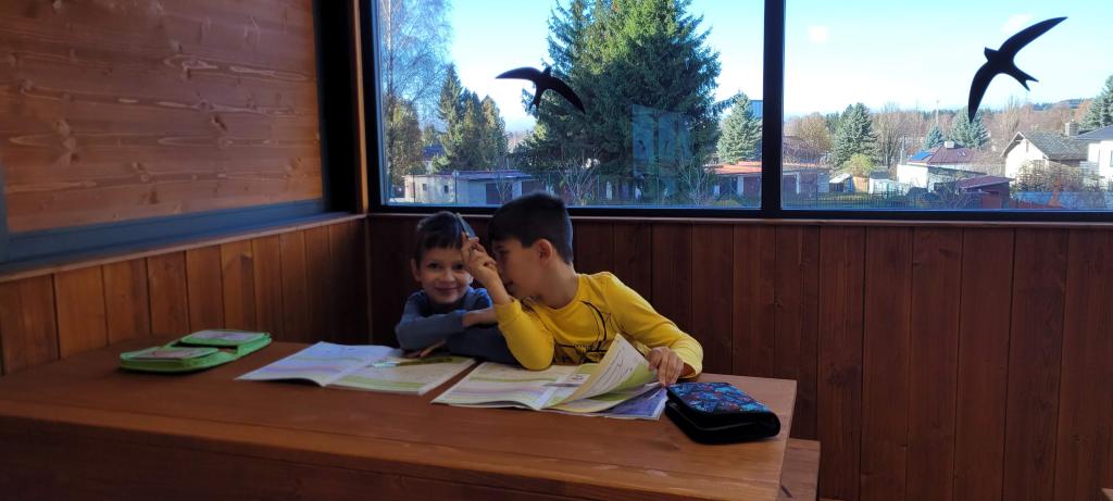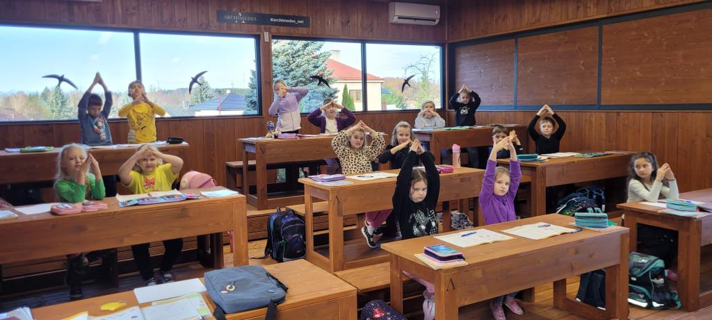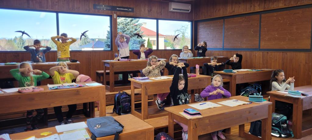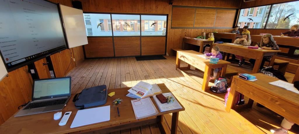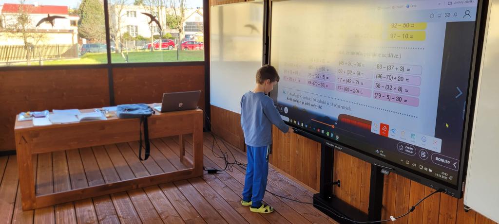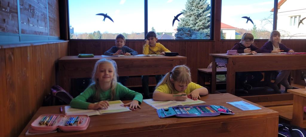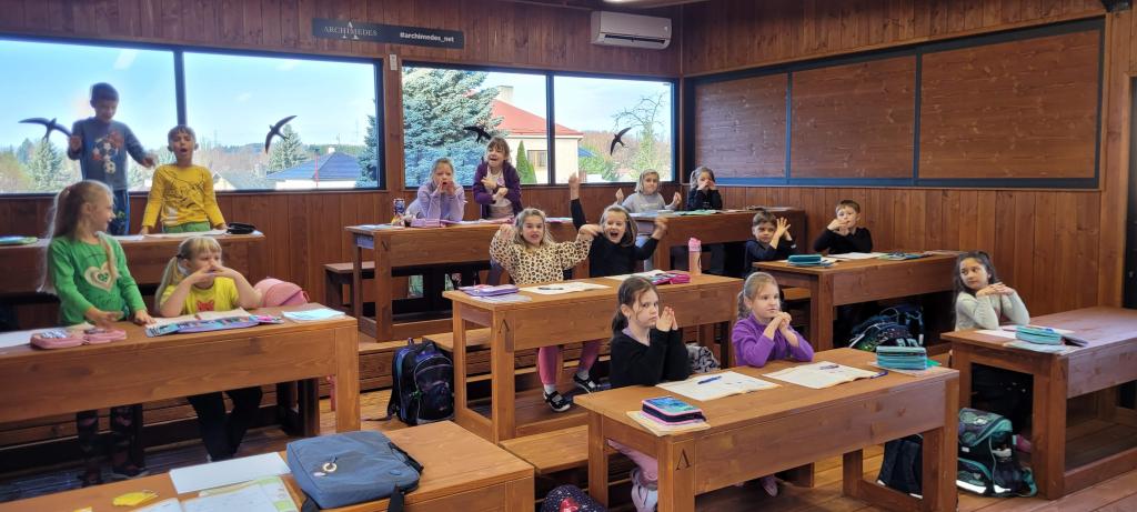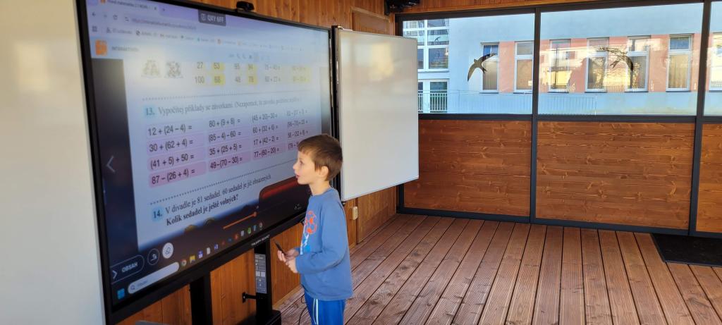 Žirafky si vyzkoušely první výuku ve venkovní učebně. Děti si nový prostor rychle oblíbily. Vyvýšené lavice, ze kterých parádně vidí na všechno před sebou i kolem sebe, by najraději měly i v naší třídě. Při učení českého jazyka i matematiky nám pomohla moderní interaktivní tabule, ale i sluníčko, které nám svítilo dovnitř velkými okny. Protože venku nezvoní školní zvonek, přestávky jsme si určovali sami. A občas jsme se i trochu „otužovali“, cesta na školní WC nás donutila přeběhnout v bačkůrkách chladným dopolednem, což se dětem hodně líbilo. Svačinu jsme si vychutnali také venku a využili k tomu okolní zahradu. Děti ji poctivě prozkoumaly a užily si dostatek prostoru i čerstvého vzduchu při hraní na schovku. Celý den byl moc příjemný a hravý. Jsme rádi, že si děti "venkovní" výuku užily a těšíme se, že si opět někdy učebnu půjčíme.