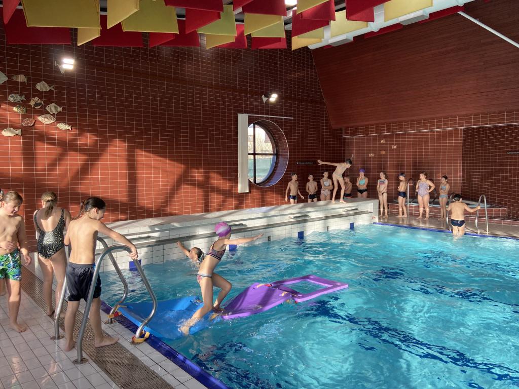 Žáci čtvrtých tříd IV. A a IV. B se v těchto týdnech účastní plaveckého výcviku v místním bazénu. Pod vedením zkušených instruktorů si děti osvojují základy bezpečného pohybu ve vodě, zdokonalují svou techniku plavání a zkoušejí různé plavecké styly.
