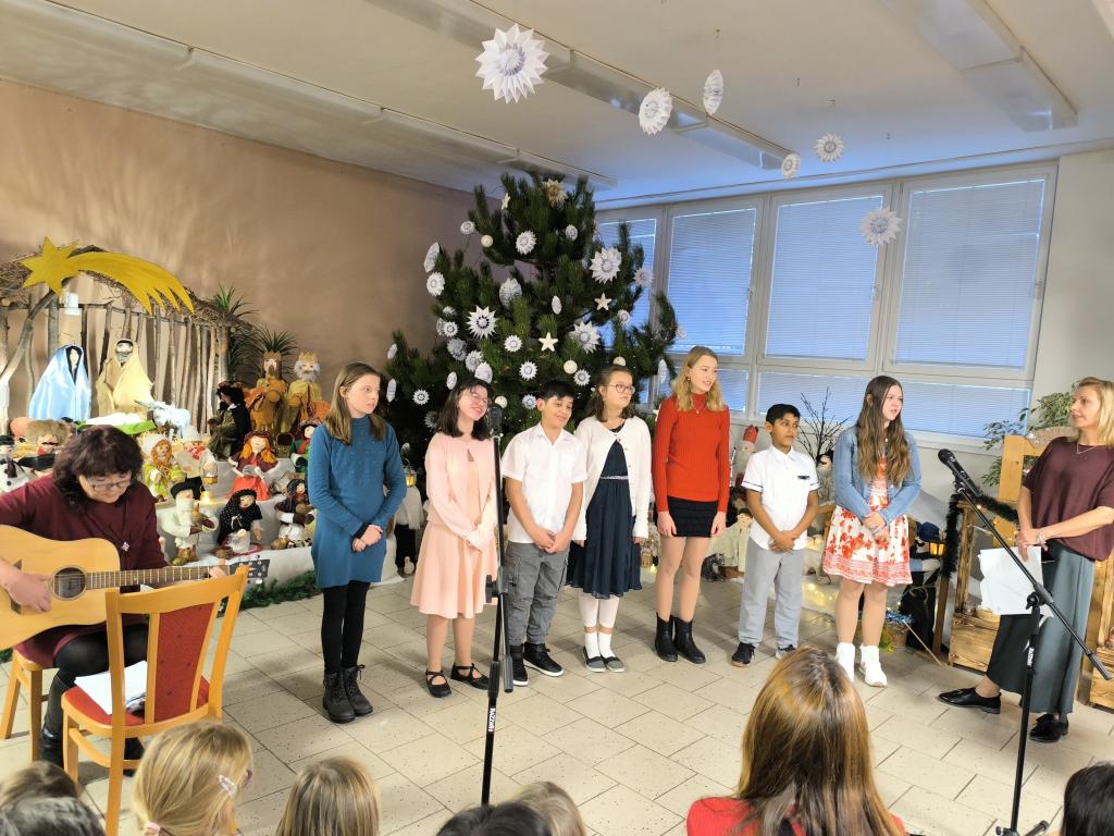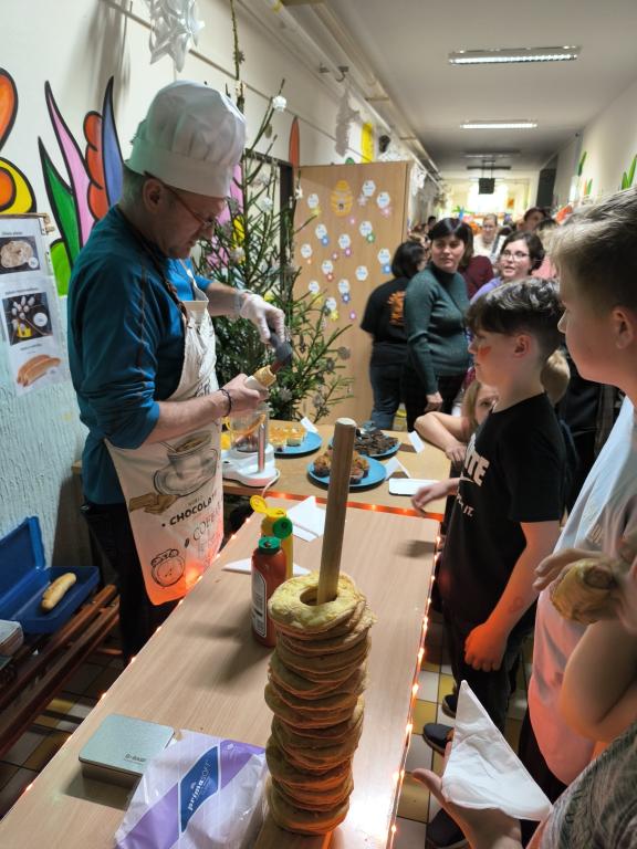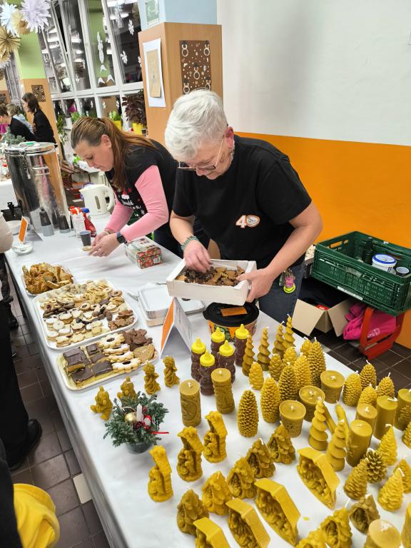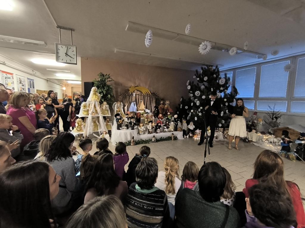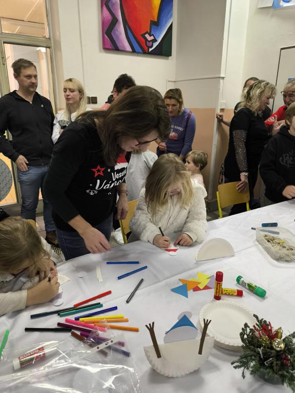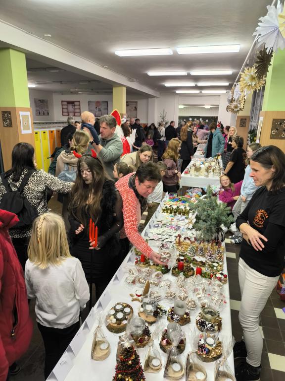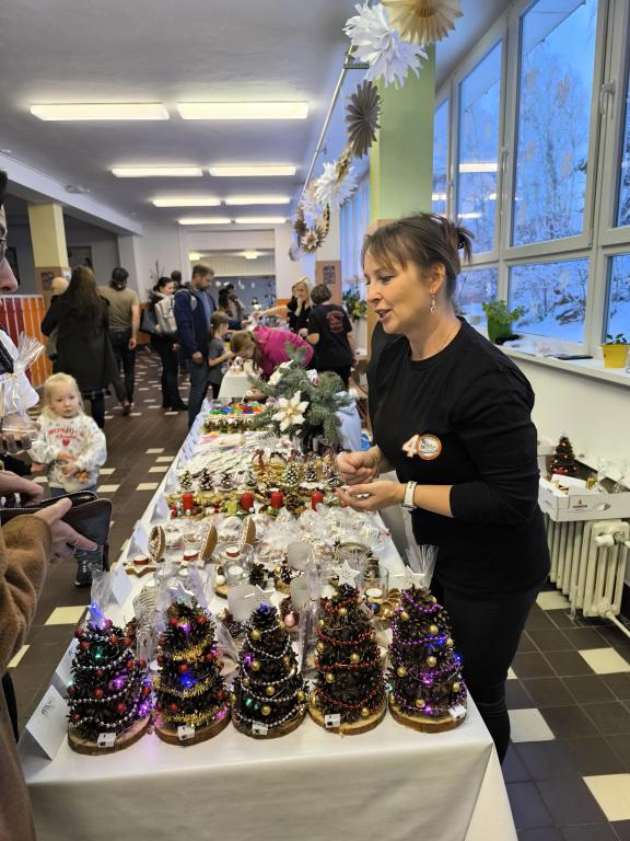 máme za sebou jubilejní desátý ročník našeho oblíbeného Vánočního těšení a opět to byl kouzelný večer plný světýlek, hudby a dětské radosti. Akce proběhla ve čtvrtek 27. listopadu a do naší školy zavítaly doslova stovky návštěvníků. Advent jsme tak společně zahájili v krásné, pohodové atmosféře. Celým programem nás letos provázeli naši šikovní deváťáci Vája a Pája, kteří si roli moderátorů užili a vedli celý podvečer s velkou jistotou a úsměvem. Úvod jako vždy patřil těm nejmenším – dětem z přípravných tříd. Jejich pásmo písniček rozzářilo vestibul a všichni se hned naladili na sváteční notu. Poté vystoupily děti ze speciální školy a jejich pečlivě připravené vystoupení nás všechny dojalo i pobavilo zároveň. Vánoční atmosféru pak nádherně podtrhl pěvecký sbor Hlásek se svým výběrem koled. Velký ohlas měly tradiční tvořivé dílničky – děti si s nadšením vyráběly dekorace, drobné dárky a ozdoby, které si poté odnesly domů. Chodbami se po celý podvečer procházeli Mikuláš, andílci a hodní čerti a rozdávali dětem úsměvy i sladkosti. Vánoční trhy opět nabídly pestrou paletu rukodělných výrobků od našich žáků, rodičů i dobrovolníků. Oblíbené vánoční kavárny byly jako vždy plné dobrot a letos jsme je obohatili o novinku – kavárnu U Zlámané lyže, kde si děti i dospělí mohli opéct marshmallow nebo si dát párek v rohlíku. Nechyběla ani Andělská pošta, kterou děti s radostí využívaly pro odeslání svých přání Ježíškovi, a samozřejmě také oblíbená Vánoční štěstíčka. Když se venku setmělo, přišel jeden z nejkrásnějších okamžiků večera – slavnostně jsme rozsvítili náš vánoční stromeček. K tomu nám pěvecký sbor Hlásek zazpíval vánoční koledy za klavírního doprovodu paní Dany Chaloupkové. Atmosféra byla opravdu nádherná a všichni, zejména ti nejmladší, byli plní radosti a očekávání.