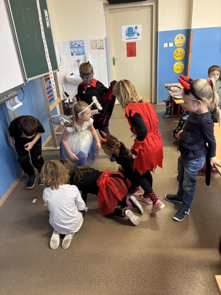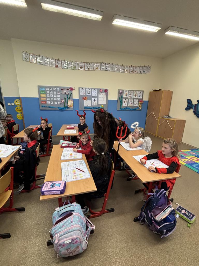 U prvňáčků to dnes vypadalo jako v opravdové pohádce – místo školáků se lavice zaplnily malými čertíky a andílky.
