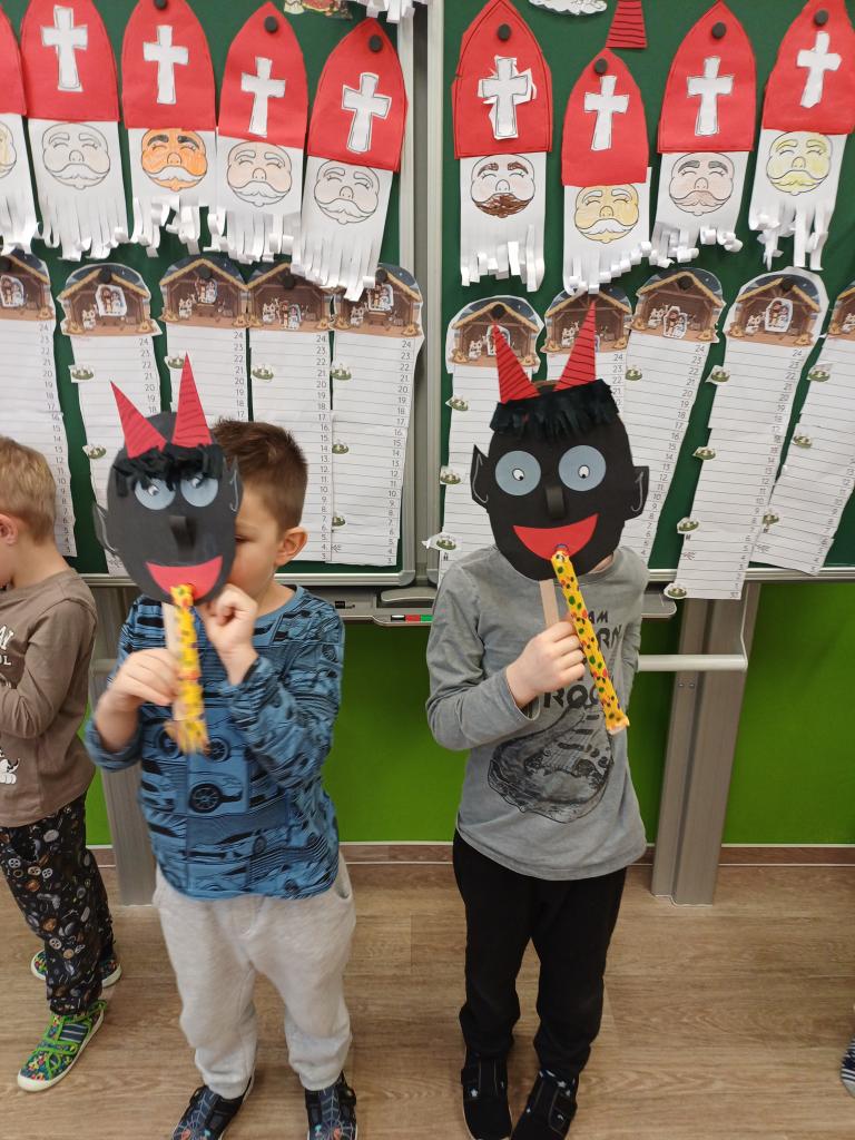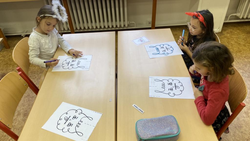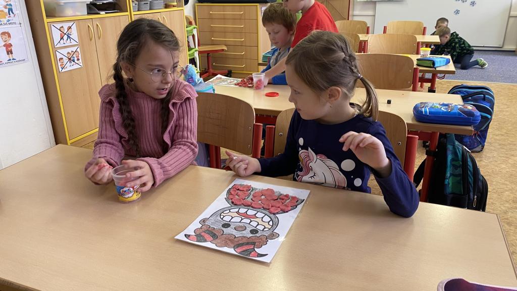 Vyvrcholením celého týdne byla návštěva Mikuláše, andílka a čerta přímo v naší třídě. Přišli se podívat, co všechno děti zvládly, a za jejich snahu je odměnili sladkými dobrotami. Atmosféra byla přátelská a milá, a i když se pár dětí zpočátku trochu bálo, díky podpoře kamarádů a paní učitelek vše proběhlo bez slziček.