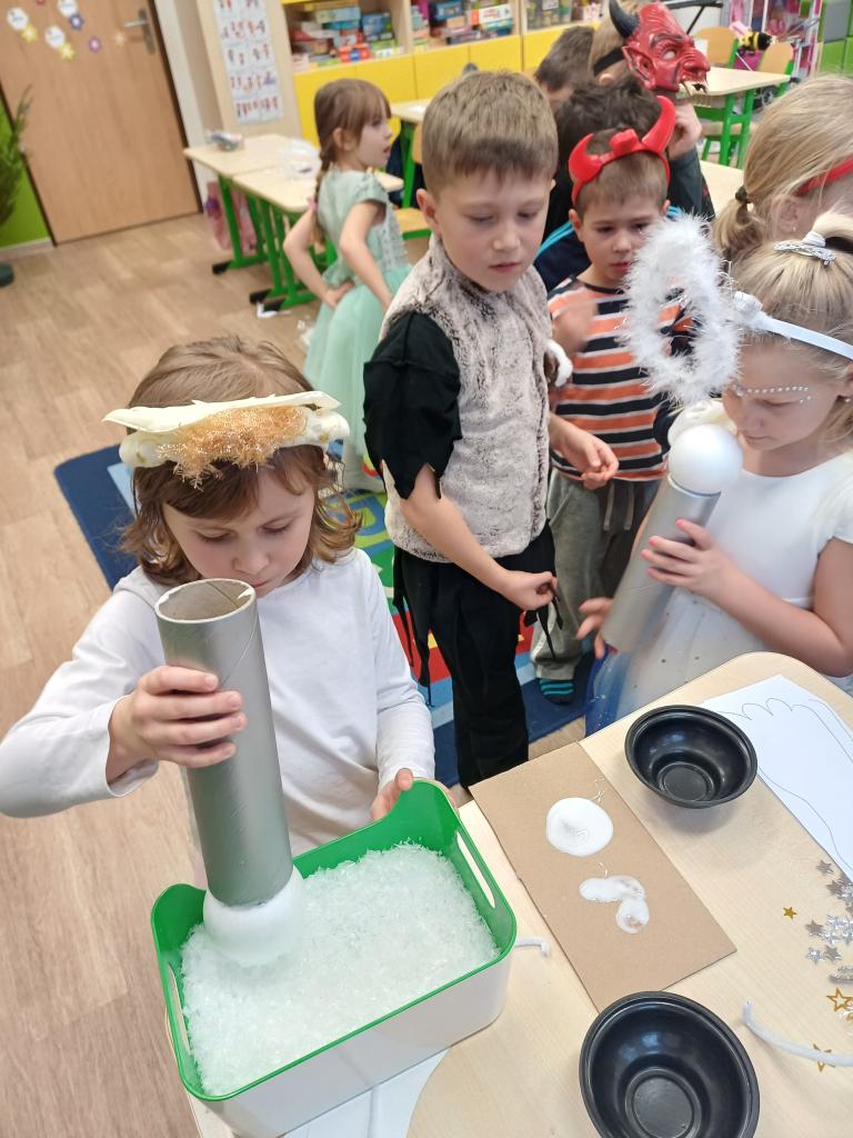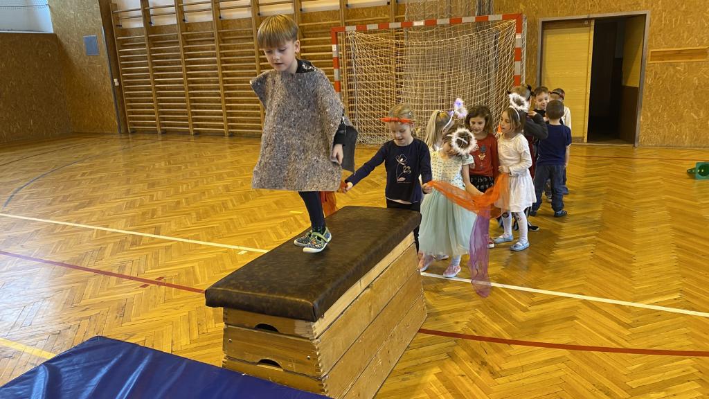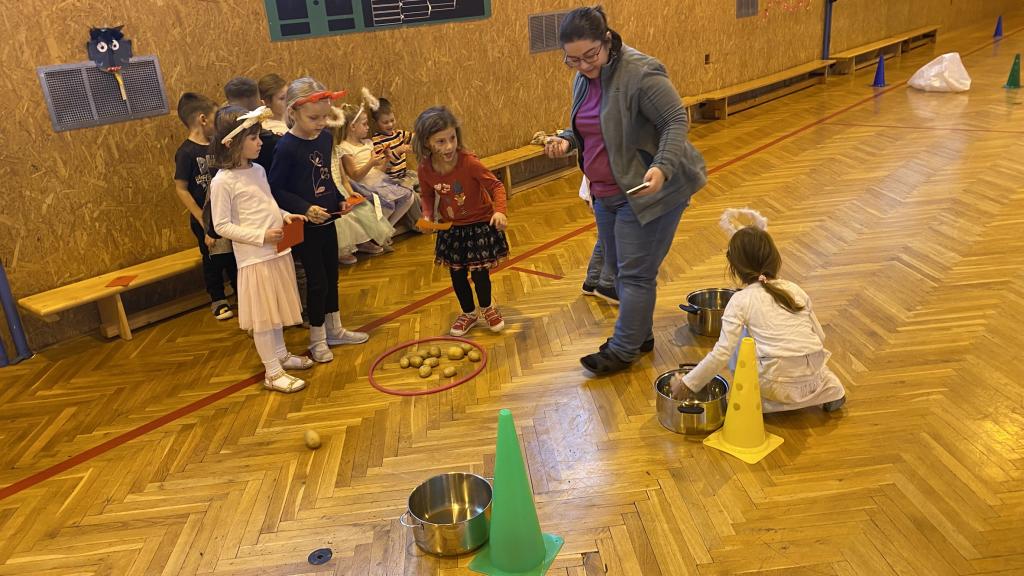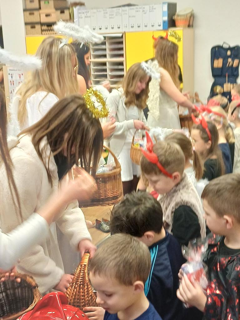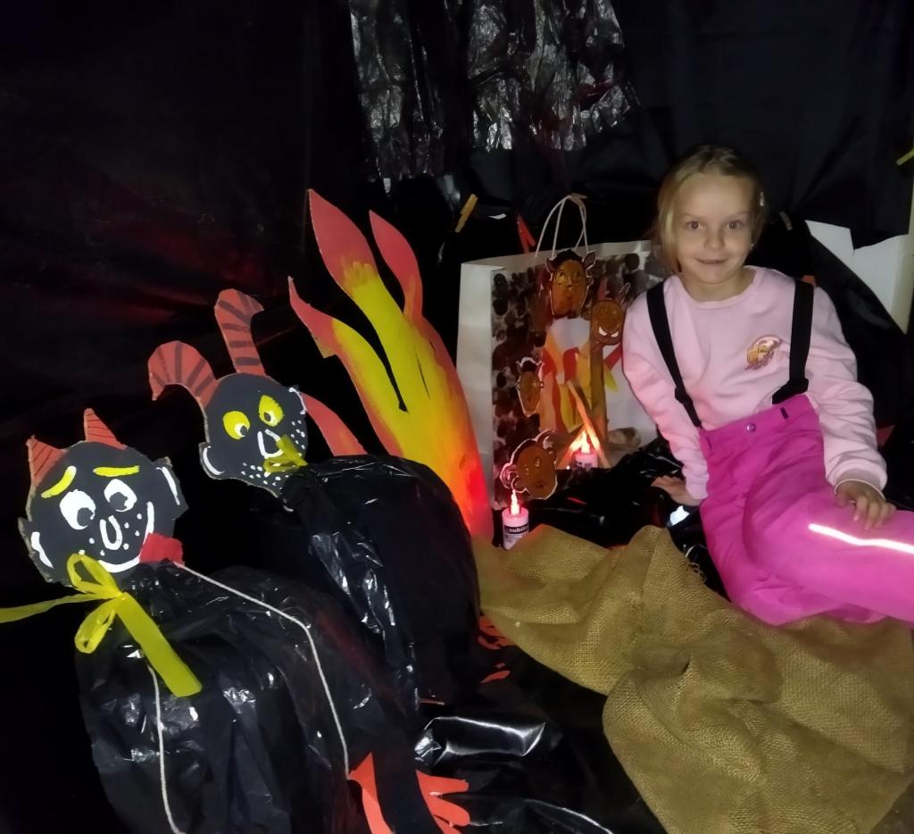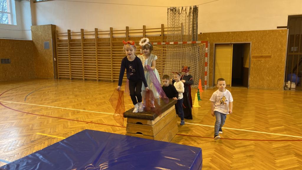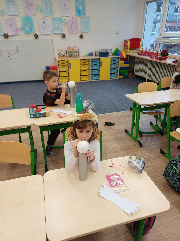 V uplynulém týdnu jsme si v přípravné třídě užili opravdu pohádkovou atmosféru, která se nesla v duchu čertů, andělů a Mikulášů. Celé naše čertovské řádění jsme zahájili návštěvou v Mateřské škole Budovatelů, kam nás pozvaly paní učitelky Radka a Mirka. Děti zde čekalo velké překvapení – peklo ve sklepě, které si pro nás paní učitelky připravily. Uvnitř nás přivítal hodný čertík, jenž si s dětmi zahrál karty. Tímto bychom chtěli paní učitelkám za milé pozvání srdečně poděkovat. Na tuto návštěvu jsme ve třídě navázali pestrými aktivitami. Děti si zpívaly čertovsko-andělské písničky, výtvarně tvořily a plnily tematické úkoly, které rozvíjely jejich fantazii, jemnou motoriku. Velkým zážitkem bylo čertí dopoledne v tělocvičně, kde jsme připravili řadu zábavných sportovních her. Děti si vyzkoušely skákání v pytli, zdolávaly pekelnou překážkovou dráhu, sestavovaly velkou hlavu čerta a také soutěžily v oblíbené hře - hod bramborou do hrnce.