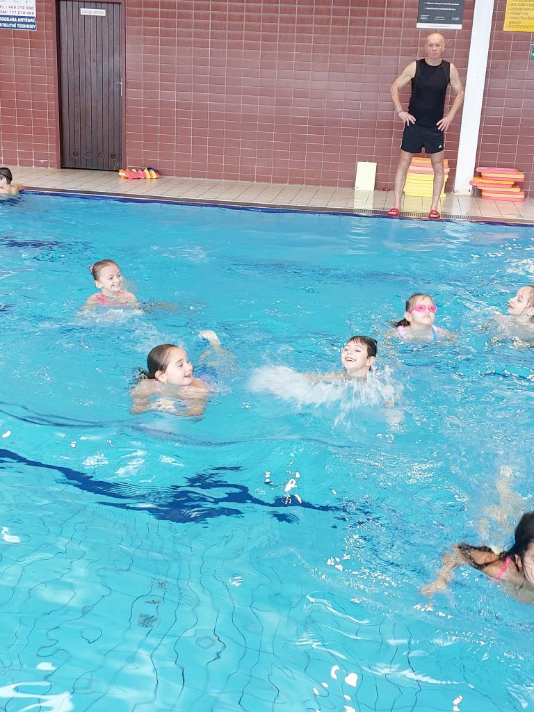V posledních týdnech každé úterý se děti z třetích tříd těší na plavecký výcvik, který opět probíhá v místním plaveckém bazénu. Třídy Motýlků a Mravenečků jsou rozděleny na tři týmy a pod vedením zkušených instruktorů si zdokonalují techniku plavání a zkouší různé plavecké styly. Závěrečné minuty každé lekce si děti užívají převážně v malém bazénku, kde se potápí s plaveckými brýlemi, vozí se na deskách a užívají si řádění pod vodním hřibem. Všichni se už nemohou dočkat na další lekce plavání!