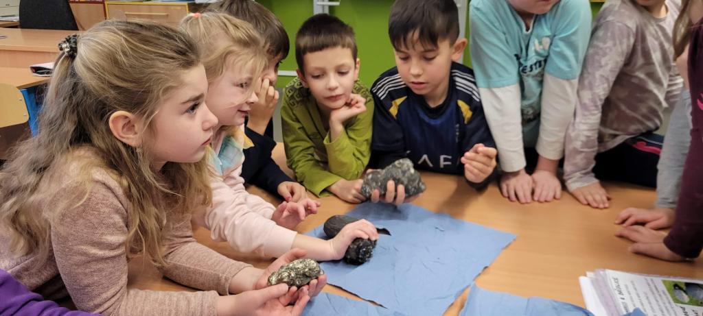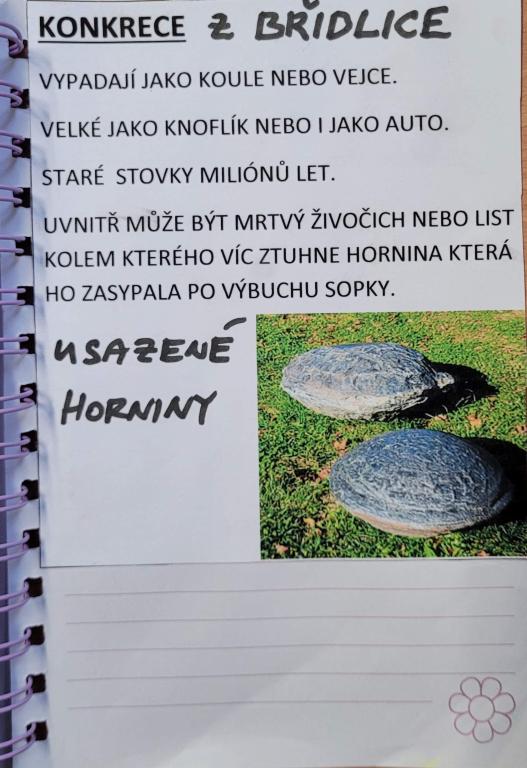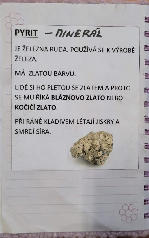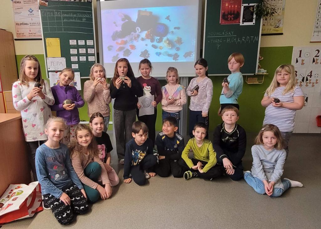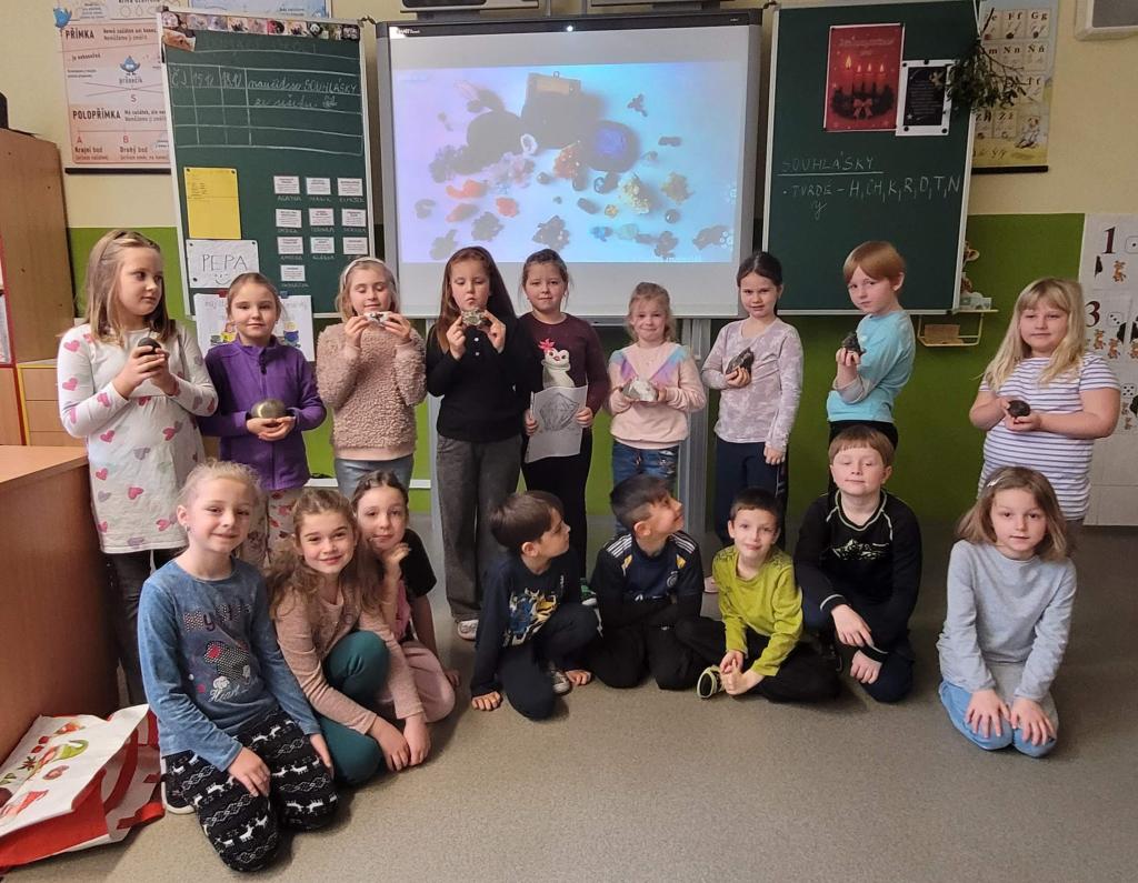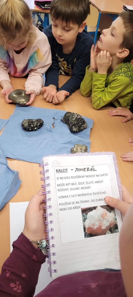 Žirafky už tři měsíce pravidelně poctivě čtou knížky podle svého výběru. Za 25 přečtení v měsíci si prvních deset čtenářů vybírá z karet aktivit. Tento měsíc si jednu kartu vybrala i Terinka. Byla to karta Hodina na přání. Místo českého jazyka si přála dětem ukázat horniny a nerosty, které přinesla od svého taťky tuneláře (razí tunel pro metro v Praze). Připravila si krátké povídání o každém exponátu. Děti si je mohly kalcit, pyrit a konkreci z břidlice nejen prohlédnout, ale i osahat, otěžkat apod. V krátké videu se děti dozvěděli jak vznikají horniny a nerosty. Na závěr hodiny Terinka rozdala dětem omalovánky diamantů. Každý si tak z hodiny na přání odnášel velké bohatství nejen nových vědomostí, ale i v podobě svého diamantu. Terince i jejímu tatínkovi děkujeme za moc hezky připravenou hodinu.