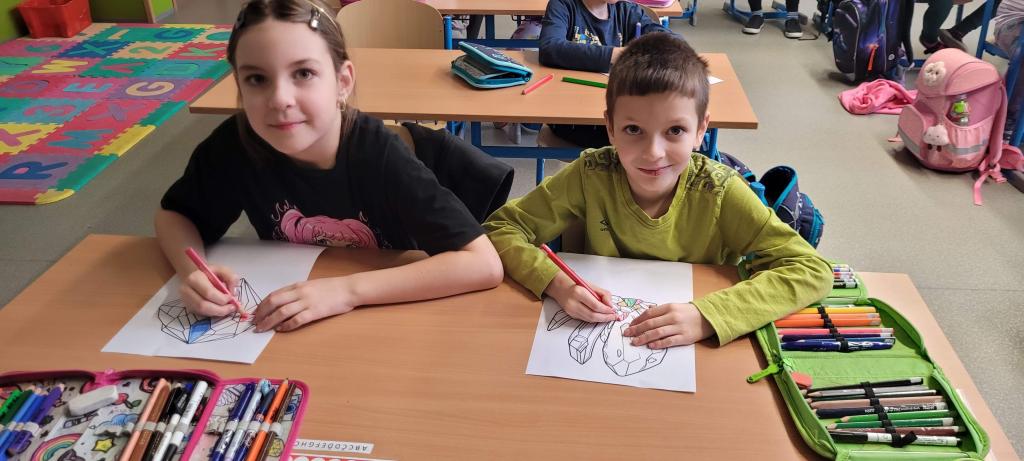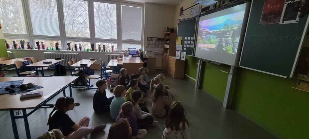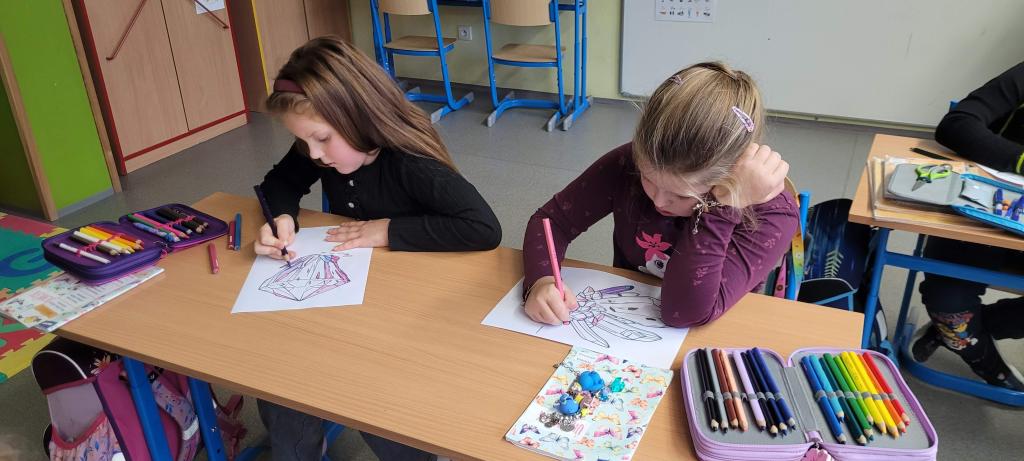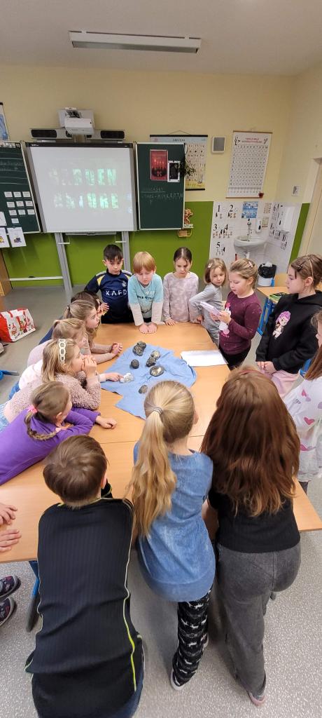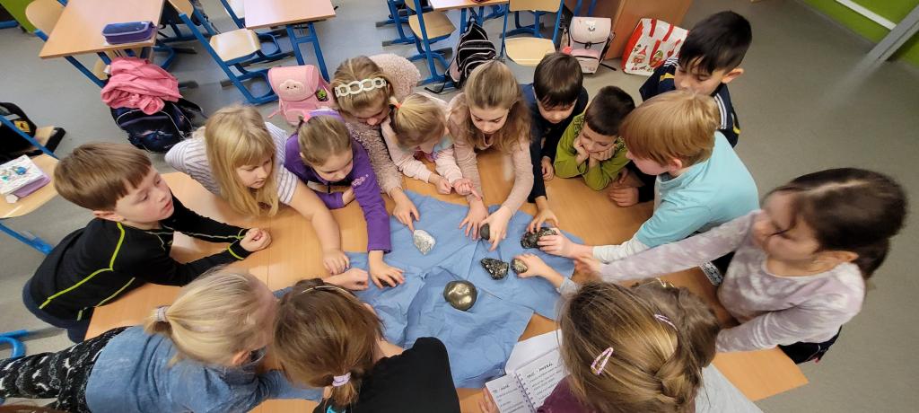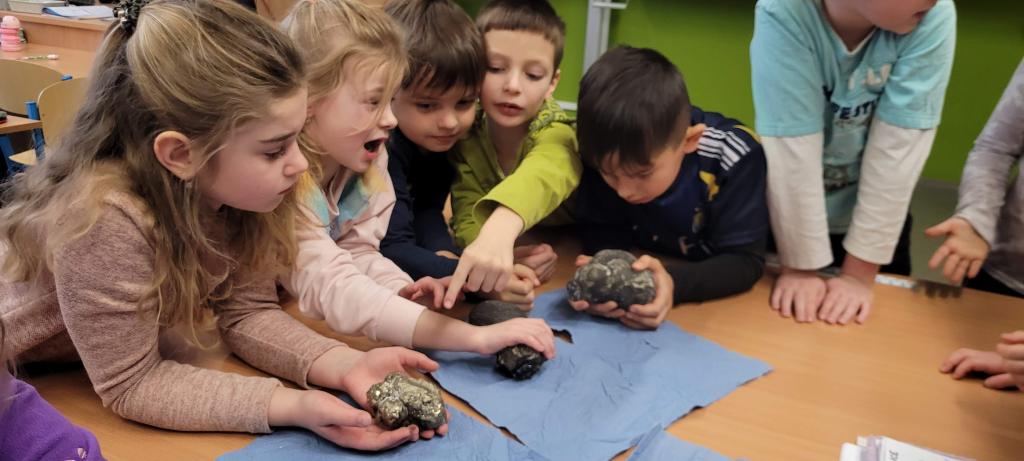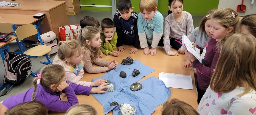 Žirafky už tři měsíce pravidelně poctivě čtou knížky podle svého výběru. Za 25 přečtení v měsíci si prvních deset čtenářů vybírá z karet aktivit. Tento měsíc si jednu kartu vybrala i Terinka. Byla to karta Hodina na přání. Místo českého jazyka si přála dětem ukázat horniny a nerosty, které přinesla od svého taťky tuneláře (razí tunel pro metro v Praze). Připravila si krátké povídání o každém exponátu. Děti si je mohly kalcit, pyrit a konkreci z břidlice nejen prohlédnout, ale i osahat, otěžkat apod. V krátké videu se děti dozvěděli jak vznikají horniny a nerosty. Na závěr hodiny Terinka rozdala dětem omalovánky diamantů. Každý si tak z hodiny na přání odnášel velké bohatství nejen nových vědomostí, ale i v podobě svého diamantu. Terince i jejímu tatínkovi děkujeme za moc hezky připravenou hodinu.