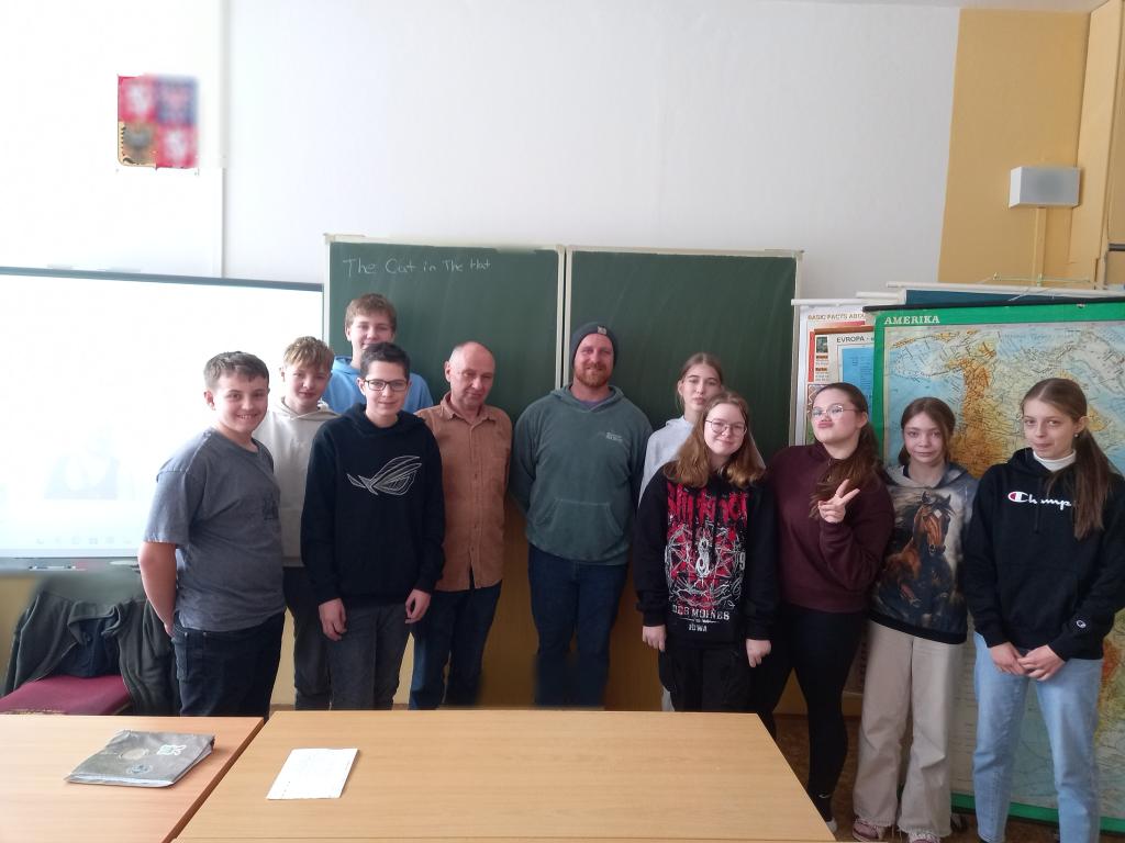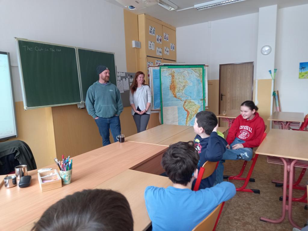 Dne 14.1.2026 navštívil naši školu rodilý mluvčí Jordan z Kanady. Se žáky ze šesté a osmé třídy jednu vyučovací hodinu v každé třídě konverzoval na různá témata, např. Vánoce, cestování, volný čas, měna-peníze u nás, v Kanadě a USA, povolání, jekjich budoucnost atd.