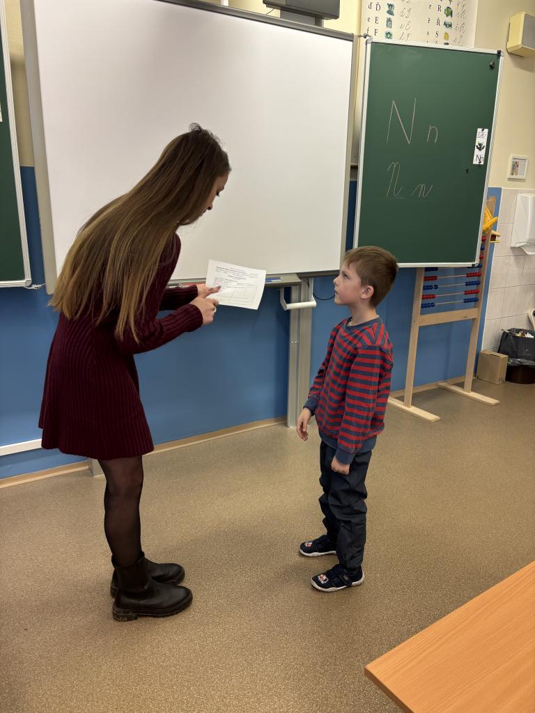 V naší třídě Chobotniček byl den rozdávání prvního pololetního vysvědčení opravdu slavnostní. Naši prvňáčci už nejsou žádní nováčci – za půl roku ve škole zvládli spoustu nových věcí a udělali obrovský kus práce.