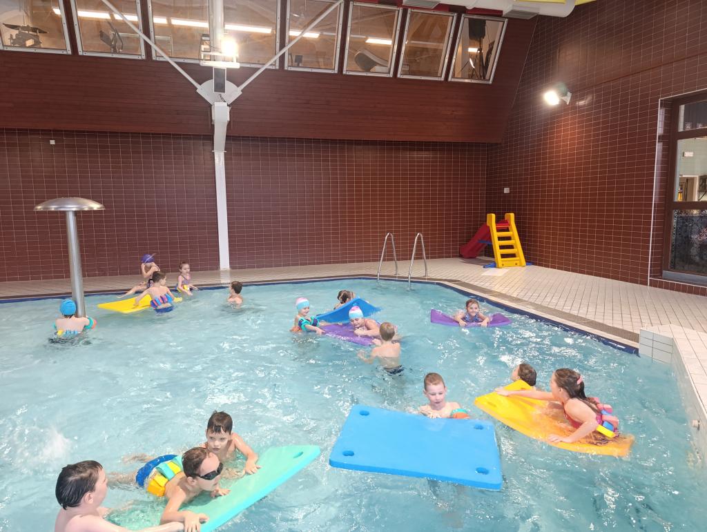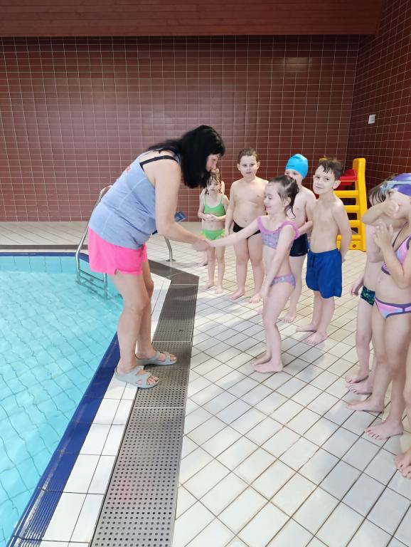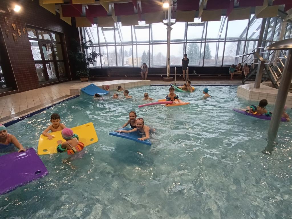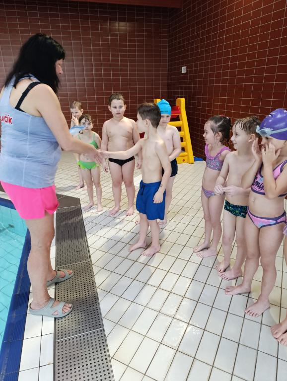 Poslední plavecká lekce našich prvňáčků byla plná radosti a smíchu. Chobotničky a Krabíci se sešli v bazénu naposledy v tomto pololetí a ukázali, co všechno se během plaveckého výcviku naučili.