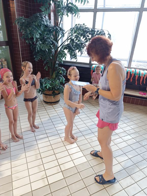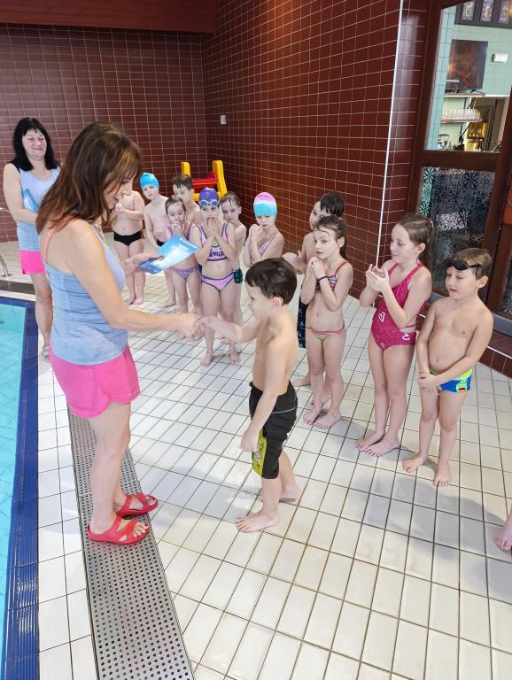Na závěr čekalo děti milé překvapení – mokré vysvědčení. To si děti zasloužily za snahu, odvahu a pravidelnou účast na plavání. Vysvědčení potěšilo a vykouzlilo úsměvy na dětských tvářích. Někteří malí plavci si ho hrdě odnášeli domů jako důkaz, že se vody už jen tak nezaleknou.