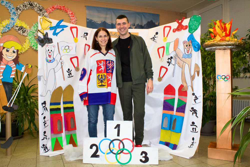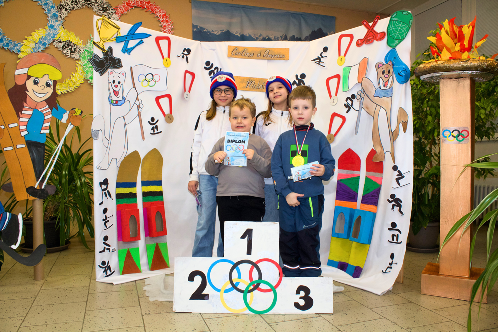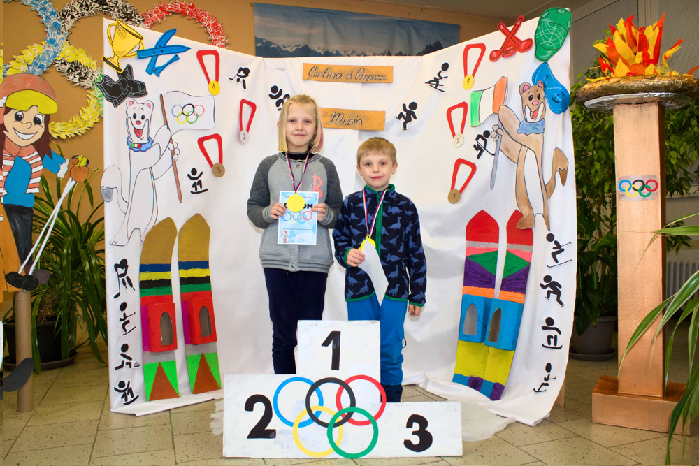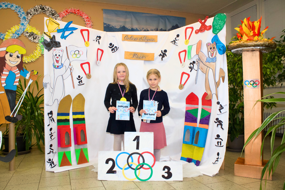 Dne 22. 1. 2026 proběhl na naší základní škole tradiční Den otevřených dveří. Vzhledem k nadcházející světové sportovní události bylo téma jasné. Zimní olympijské hry! Celá škola se zbarvila nejen do tradičních olympijských barev, ale i do vlastenecké trikolóry. To ale nebylo všechno! Naši žáci se změnili ve sportovce, trenéry, sportovní hlasatele, komentátory, rozhodčí apod. Po škole Vás tedy najednou úplně klidně mohla provést například krasobruslařka s bruslemi. Hned v úvodu příchozí dostali vstupenku, díky které byli vpuštěni do olympijského areálu. Prošli okolo plápolajícího olympijského ohně a pokračovali k prvnímu stanovišti, kde si vyzkoušeli spoustu zajímavých aktivit. Mohli se zde občerstvit čajem, kávou či perníčkem. Sílu totiž hned potřebovali! Na malé závodníky zde čekal celý stadion! Tady si malí sportovci vyplnili startovací listiny a naskočili do závodního bobu. Po sjetí dráhy si nazuli lyže a odběhli lyžařskou trasu. Díky tomuto úsilí se probojovali až ke stupňům vítězů, kde na ně čekala antická bohyně, jako odkaz na starověké olympijské hry. Ta jim slavnostně předala medaili a diplom. Odtud mohli návštěvníci pokračovat v dalších disciplínách, které pro ně byly připraveny v oddělení školní družiny. Zde si vyrobili maskota olympiády a mohli nahlédnout do krásných a barevných tříd. Další aktivity čekaly na prvním stupni, kde si všichni návštěvníci mohli prohlédnout třídy. Další úsilí museli malí sportovci prokázat v učebně jazyků. Tato moderně vybavená třída úplně vybízela k turnaji. Bylo velmi obtížné porazit paní učitelku Míšu, ale proslýchá se, že některým návštěvníčkům se to podařilo! Odpočinout po takovém zápasu si děti mohly díky ukázkám v učebnách fyziky, přírodopisu a zeměpisu. V učebně robotiky si každý mohl vyzkoušet naprogramovat a vést skutečného robota a vidět v procesu 3D tiskárny. Obdiv si zcela jistě zasloužili žáci naší školy, kteří si i s náročnými technologiemi dokázali hravě poradit a prokázat tak tvůrčí i logické myšlení. Na závěr přišlo na řadu opět občerstvení. Po tolika aktivitách a výkonech hned v několika typech sportů muselo vyhládnout opravdu každému! K ukázce byla otevřena i venkovní učebna, která pro výuku skýtá mnoho možností a výhod. Protože kdo by se nechtěl někdy učit venku, na vzduchu, na sluníčku, ale se všemi věcmi, které k pohodlnému učení potřebuje? Z venkovní učebny vedla cílová rovinka. Každému sportovci se zde dostalo podpory, potlesku, pochvaly a medaile s diplomem!