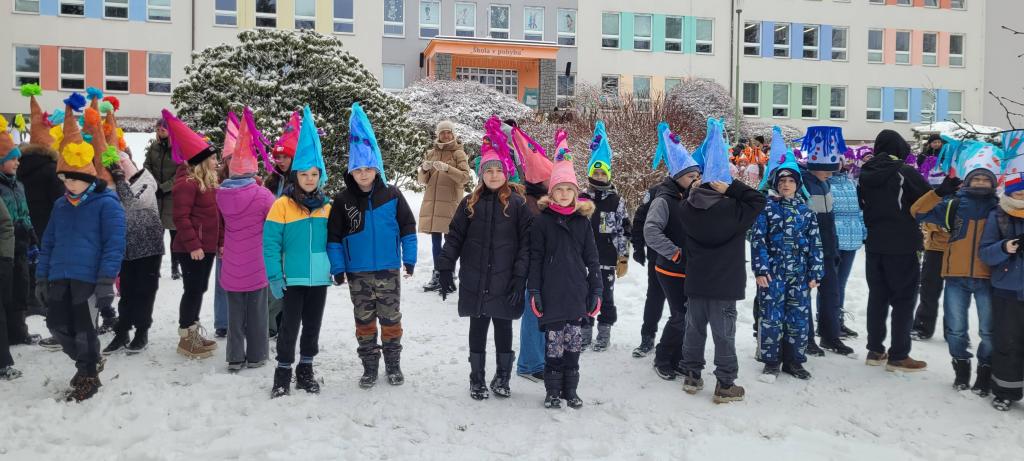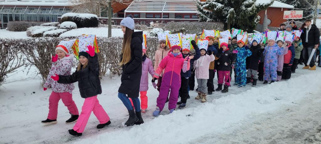 Program začal v dopoledních hodinách, a to před Základní školou Smetanova, kde se o půl 10 shromáždily děti ze všech hlineckých základních a mateřských škol v nádherných originálních čepicích. Po zahájení se dlouhý průvod vydal za doprovodu dechové kapely Mrákotínka na cestu hlineckými ulicemi. Krátká zastávka potěšila i obyvatele Domova seniorů Drachtinka, kde si děti zatančily a za odměnu dostaly bonbon. Odtud pak průvod pokračoval přes Wilsonovu a Komenského ulici na Betlém. Děti si vysloužily za svou účast a nápaditost při výrobě masopustních čepic výborné masopustní koblihy.